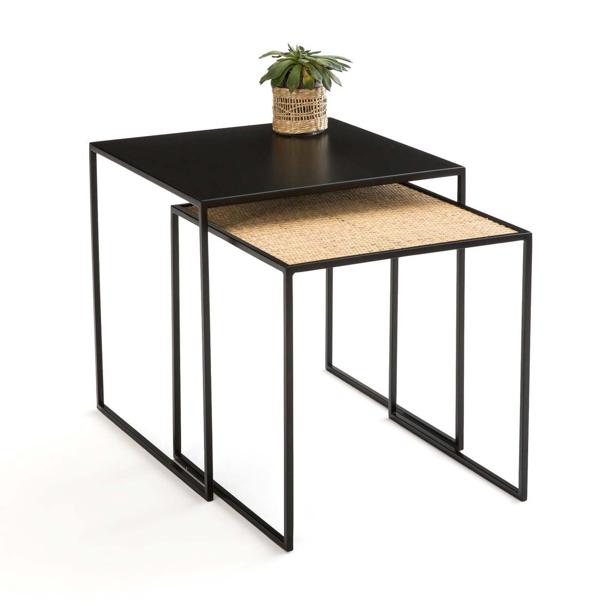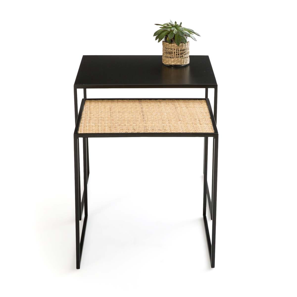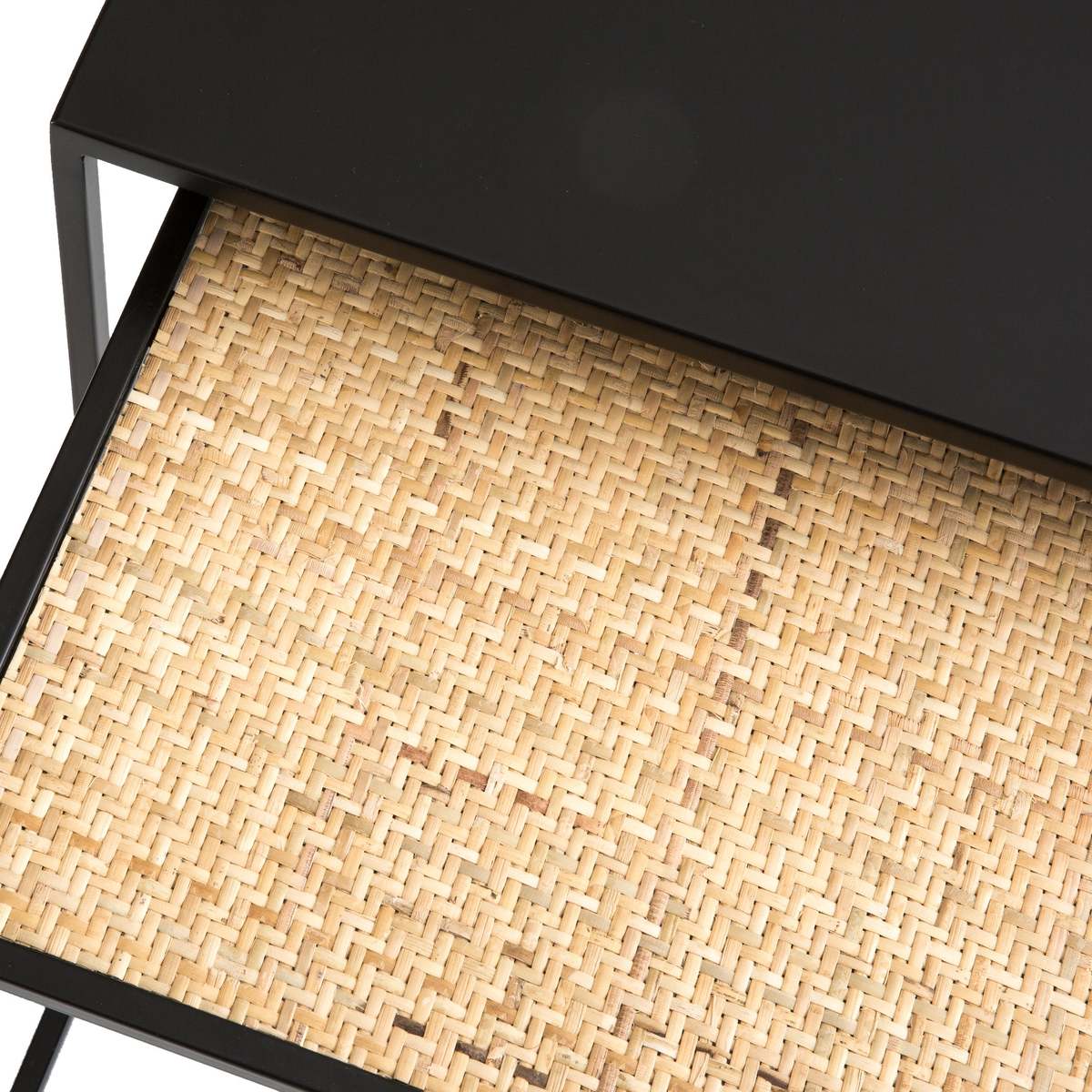 Rosali Nest of 2 Coffee Tables in Metal & Cane