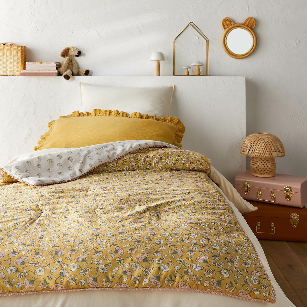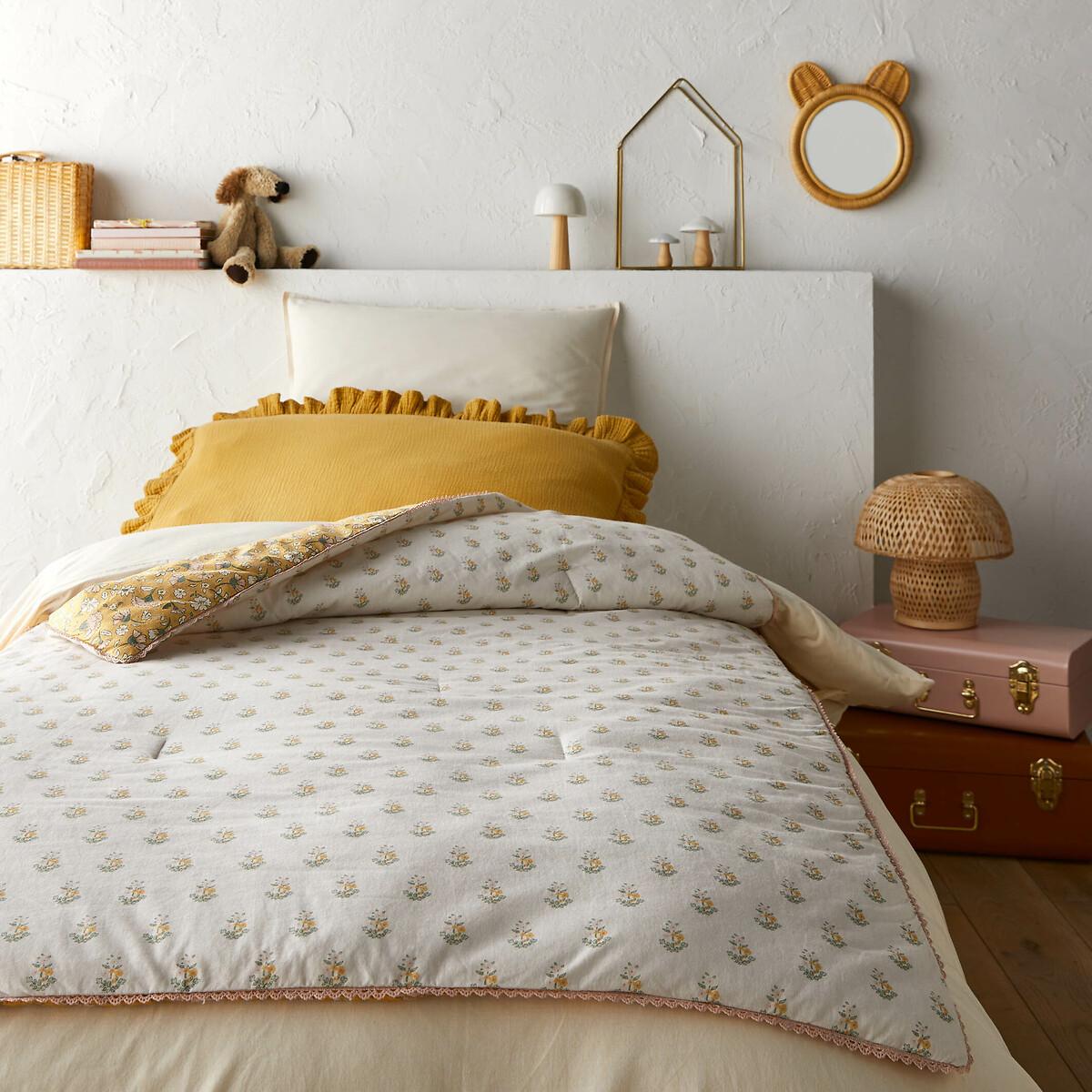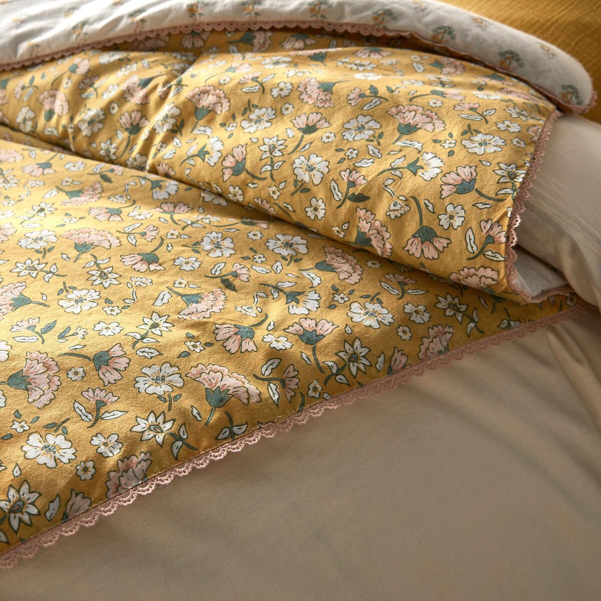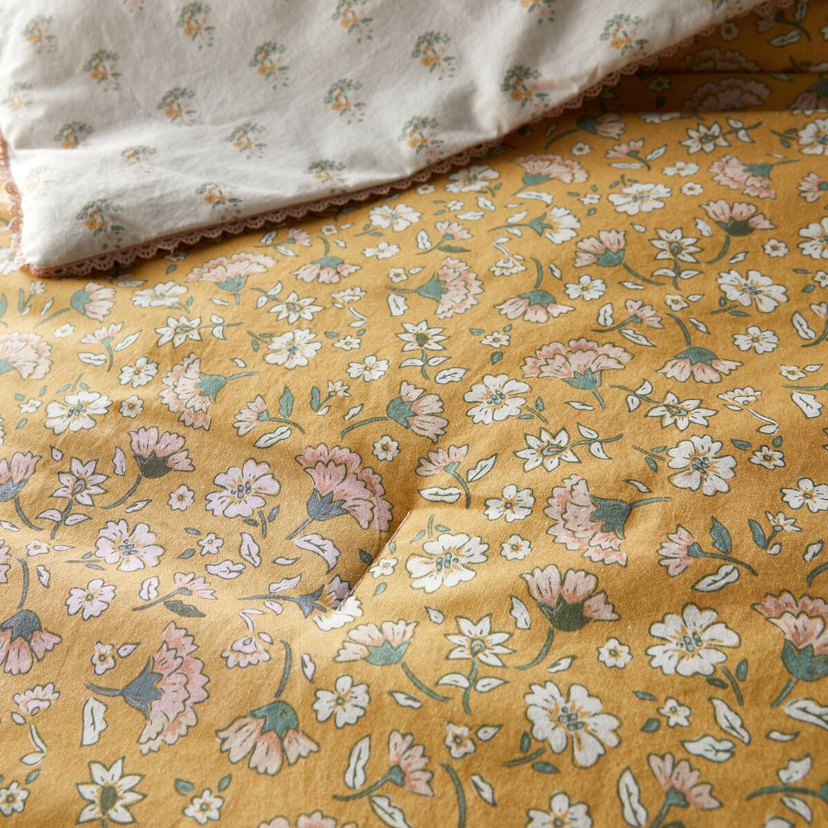 What will you love about Rosalie? The softness of washed cotton, the finesse of its floral pattern and the lace ribbon finish. A design exclusive to La Redoute Interiors. The washed cotton has been delicately bleached during its manufacture. Soft, supple and comfortable, it softens over time. Its slightly wrinkled appearance is incredibly on-trend, and it does not require ironing. Product Details • 100% pre-washed cotton • Front/back printed with different Indian flowers • Filling 100% polyester, 150g/m² • Lace ribbon finish. Dimensions • 90 x 190cm: Oblong • OEKO-TEX® Standard 100. Standard 100 certification by OEKO-TEX® tests textile products for harmful substances via an independent, international label.