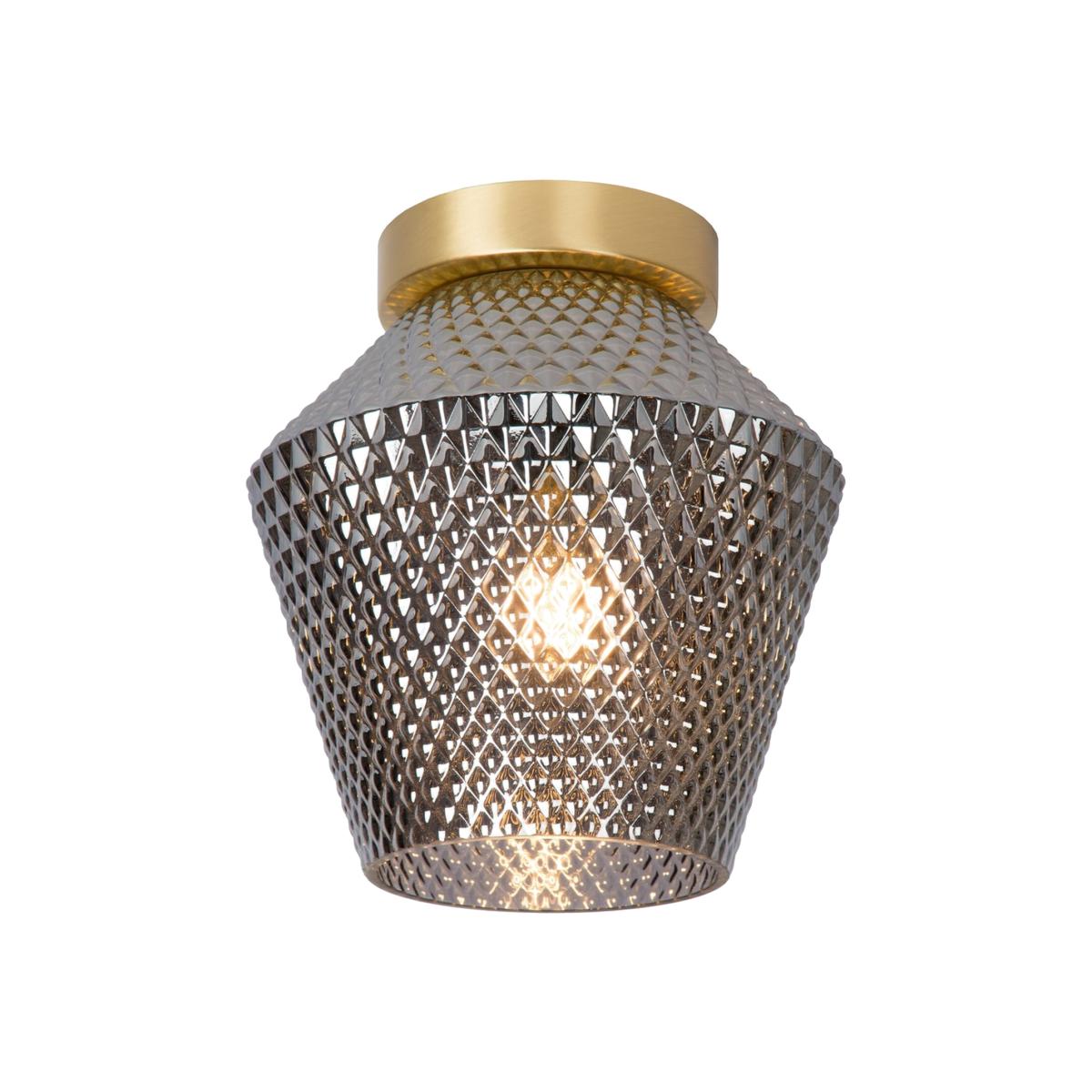 Rosalind Vintage Flush Ceiling Light Smoke Grey - Brass
