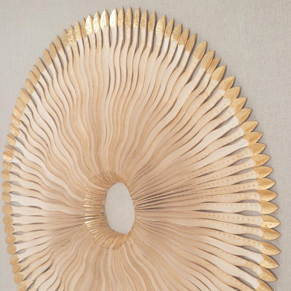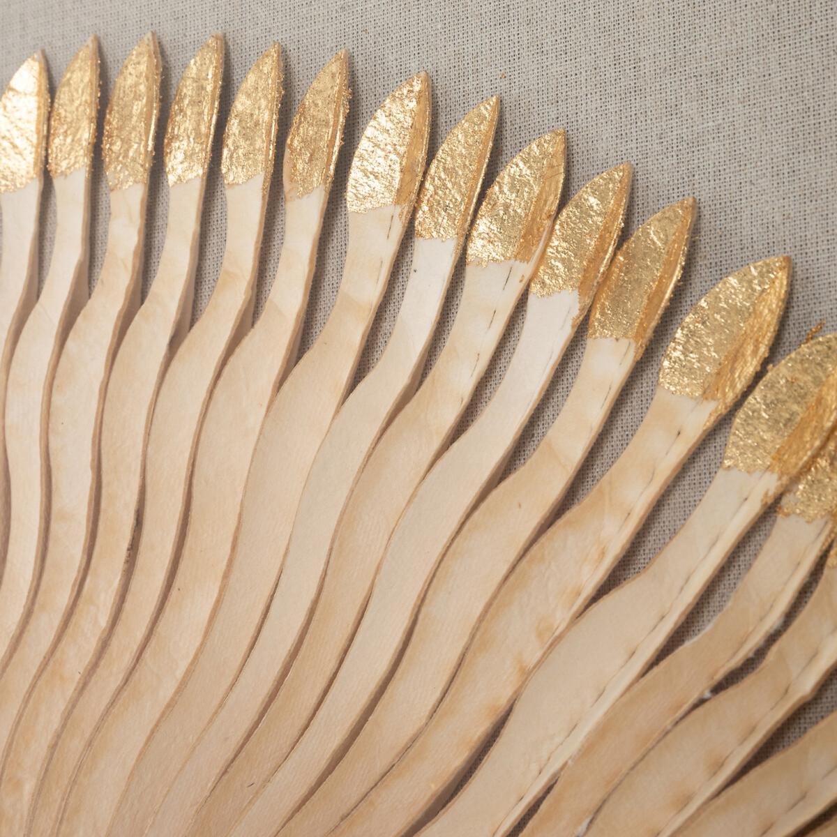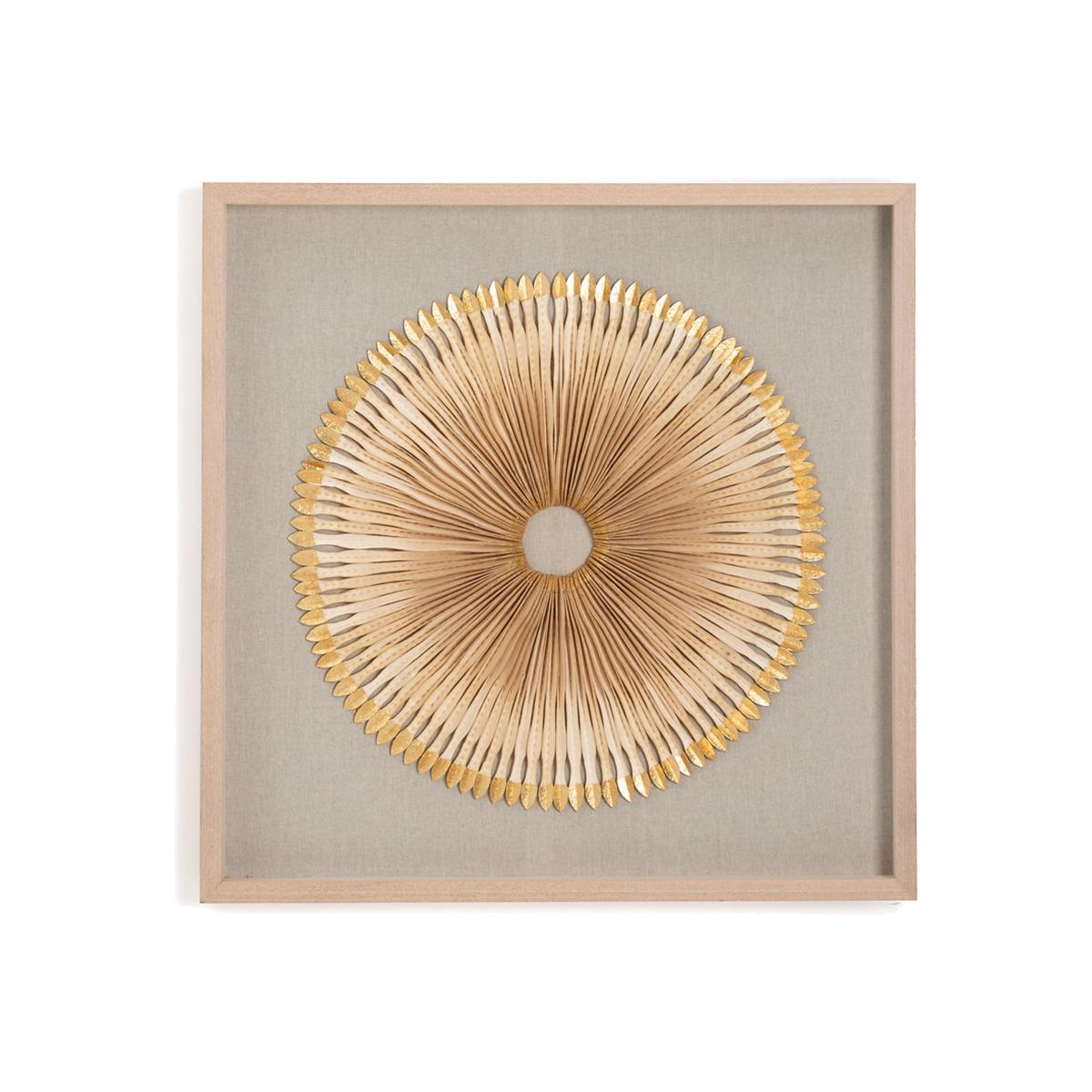 . A wall decoration made of feather-effect worked paper placed under glass.