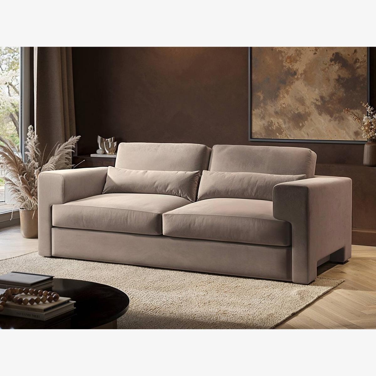 I love this beige velvet three-seater for its versatile and timeless appeal. Its neutral tone makes it a great foundation for both contemporary and classic interiors, and the plush velvet adds a subtle touch of luxury without feeling overly formal. It works particularly well in neutral or pastel schemes, but can also be paired with bold colours for a more eclectic look. For styling tips, consider contrasting with textured cushions or throws to create interest, and place it against a patterned wallpaper or bold artwork to make a statement. Practical accents like a cosy throw or accent cushions can also enhance comfort and style, making this sofa a functional yet stylish centrepiece in any living space.
