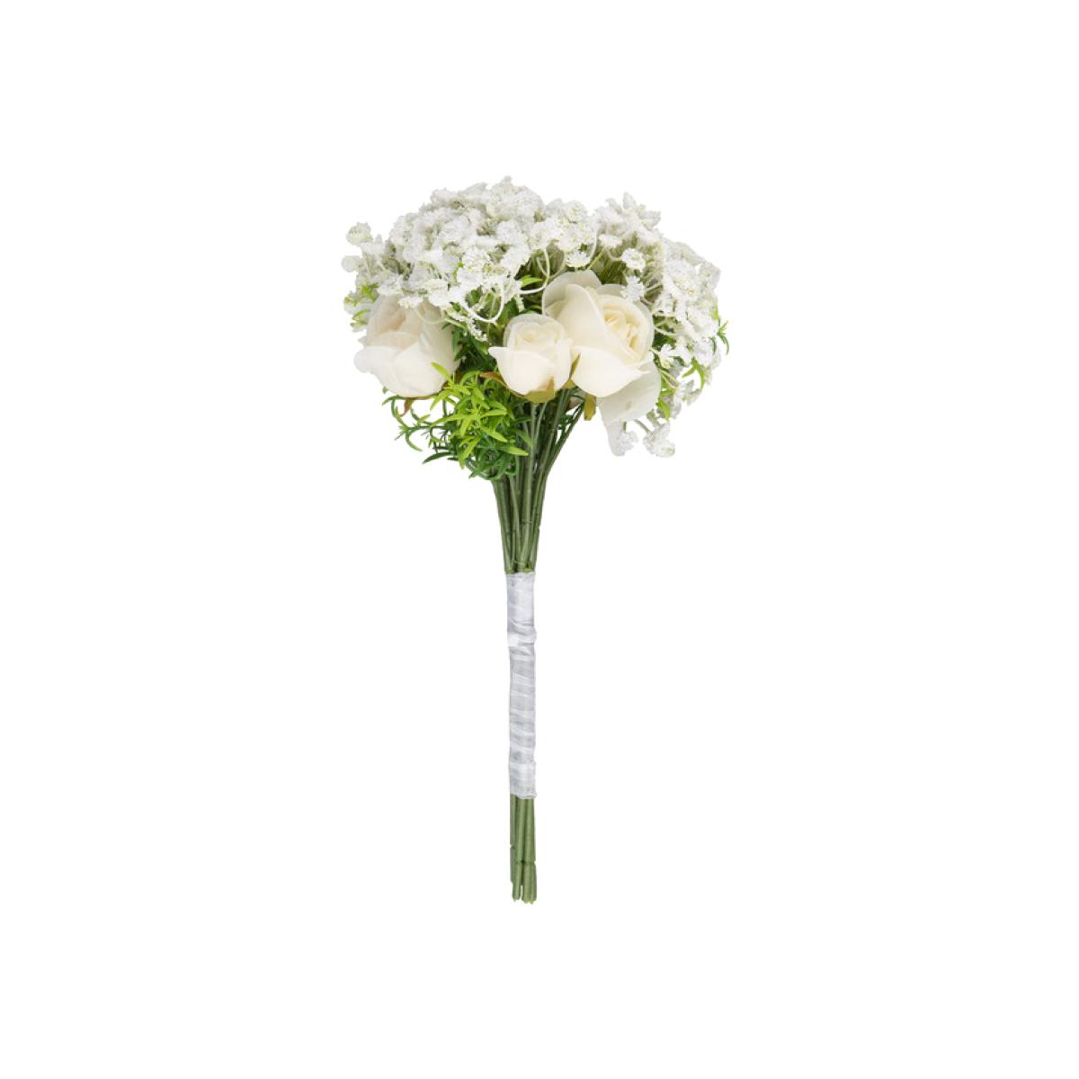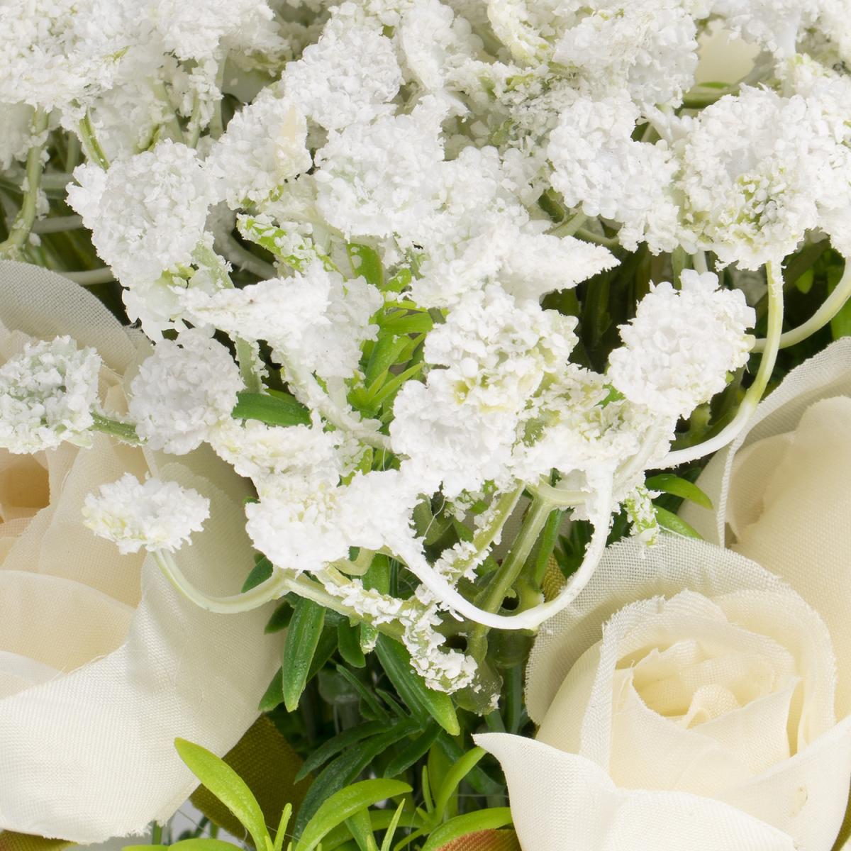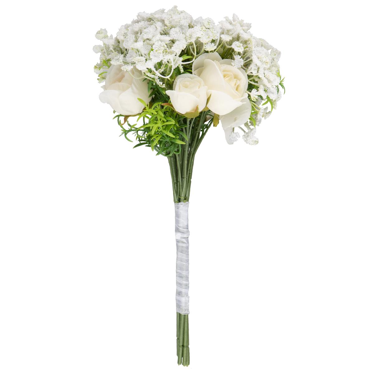 A gentle and versatile floral accessory for your home, the Rose and Gypsophila Bouquet brings the outdoors in. Boasting a realistic design that's finished with a white ribbon, this bouquet is ideal for weddings, parties, and creating an elegant ambience in any space. Each petal is intricately created for a look that's so pretty, you'll want to look at it forever.
