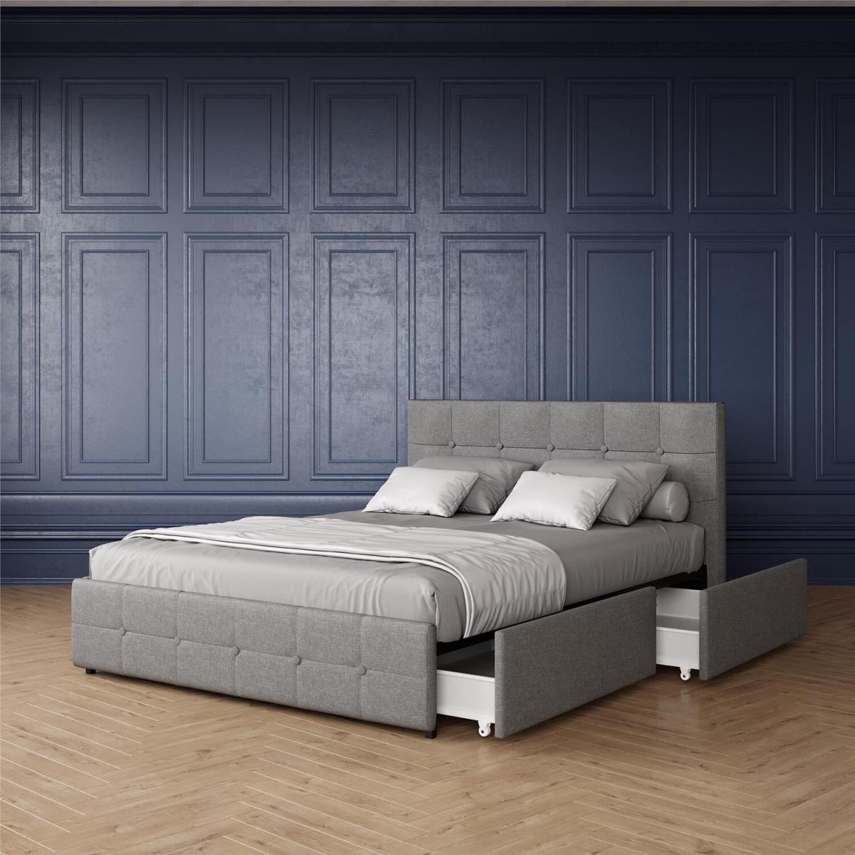 Simple and elegant, the Rose Upholstered Bed with Storage will make a lasting impression in your room. With a modern look and a touch of mid-century style, this bed combines fashion and function. On the one hand, it is upholstered in linen featuring button-tufted details in foam padding in both the headboard and footboard. On the other hand, it comes with drawers that provide extra storage space for your bed sheets, season clothing and accessories.