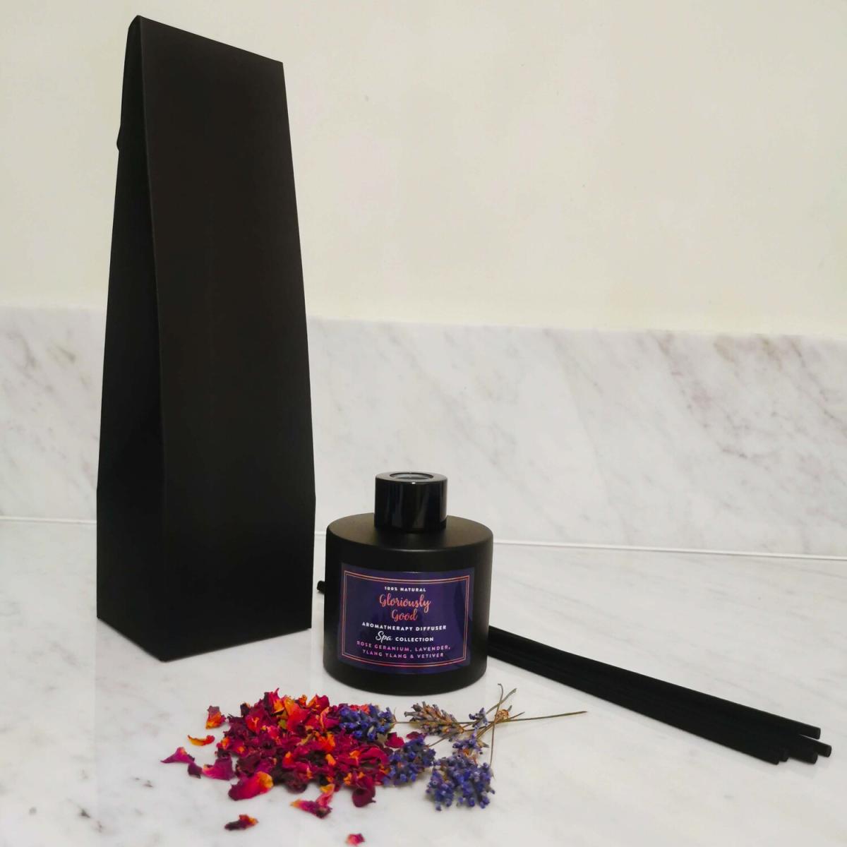 Create your at-home sanctuary by placing this reed diffuser in your 'happy corner', alongside all the other things that bring you joy. More than aromatherapy, this elegant reed diffuser is stylish way to softly scent a room while beautifully complementing any interior decor. Take a moment to breathe in its delightful fragrance. Instantly feel more calm, relaxed, joyful and uplifted. Enjoy having your heart content with a deep sense of joy and gratitude. Comes in an elegant satin black box, making it perfect for delighting a loved one with a thoughtful gift.