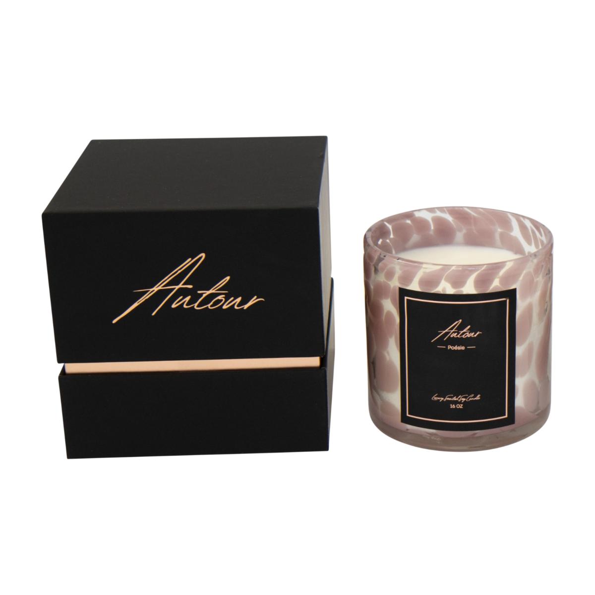 Rose Gold Autour Luxury Soy Candle Poèsie - Sandalwood,Lotus Flower,Roses, Italian Mandarins Autour Candles & Decor