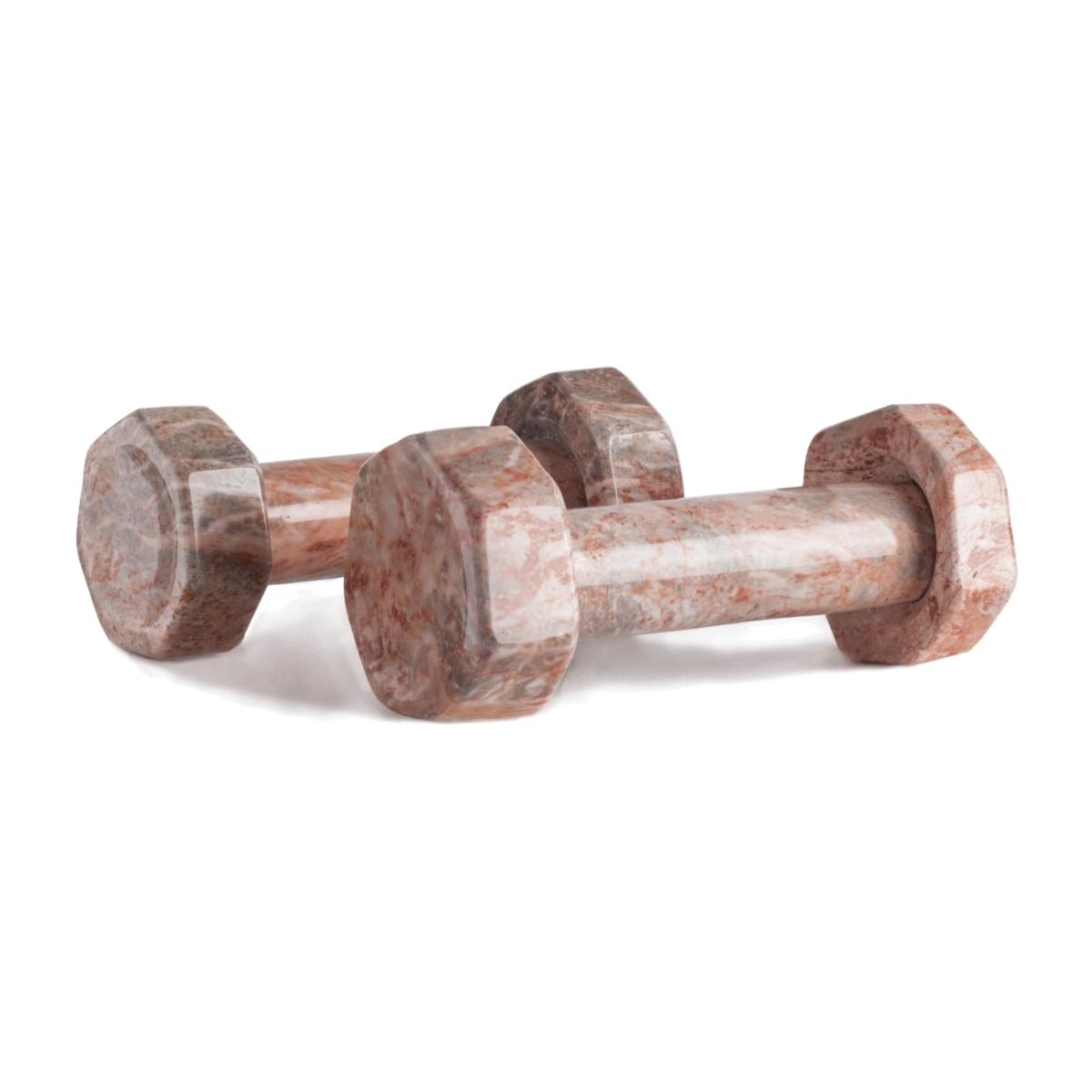 The marble dumbbells give an elegant style when exercising. We also love not having to store them and use them as decorative items or functional sculptures at home or bookends! The marble being natural and hand carved, each piece will be unique and different from the photo. Sold in pairs.
