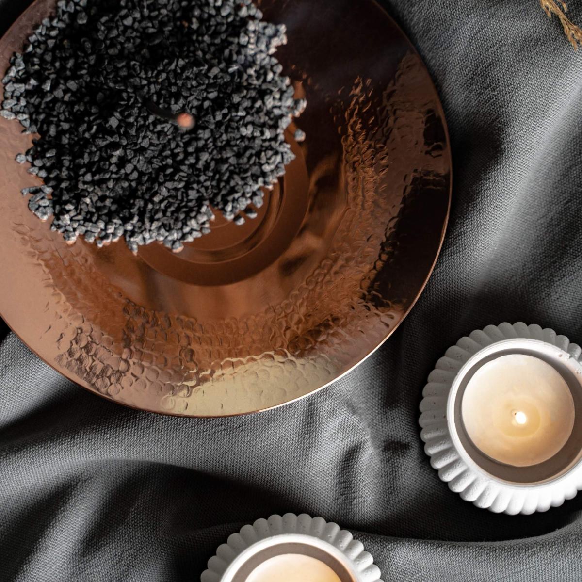 Enhance your wellness rituals with the Hand-Hammered Copper Spiral Wellness Plate, thoughtfully designed to bring balance and serenity to your sacred space. The concentric spiral pattern on the plate symbolizes harmony and inner focus, making it the perfect companion for mindfulness practices, meditation, or energy-cleansing routines. Crafted from pure copper, known for its antimicrobial and grounding properties, this plate not only exudes beauty but also supports holistic well-being. Whether you use it to hold incense, palo santo, crystals, or simply as a decorative accent, its hand-hammered texture radiates artisanal charm and tranquility.