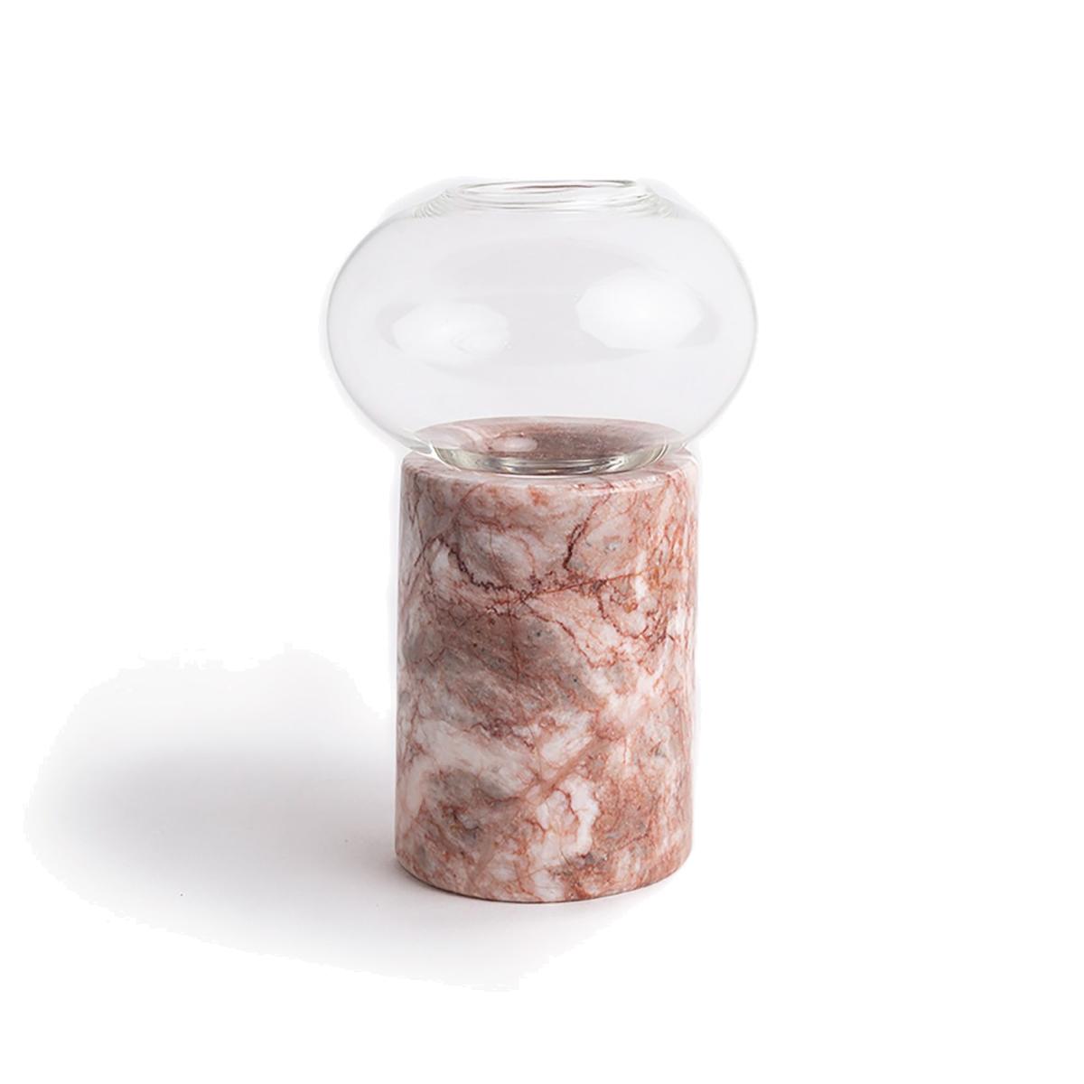 I love this bubble vase because of its contemporary take on classic materials, blending the soft blush pink marble base with the playful, transparent glass bubble. It’s a versatile piece that works well in both modern and eclectic interiors, adding a touch of colour and texture without overwhelming the space. I recommend pairing it with fresh or dried florals to highlight the pink tones, and placing it on a sidetable or mantel to create a focal point. For best styling, keep surrounding decor minimal to let the vase's unique shape and colour stand out, or mix it with other metallic accents for a chic look. It’s a great accent piece that offers both function and visual interest.