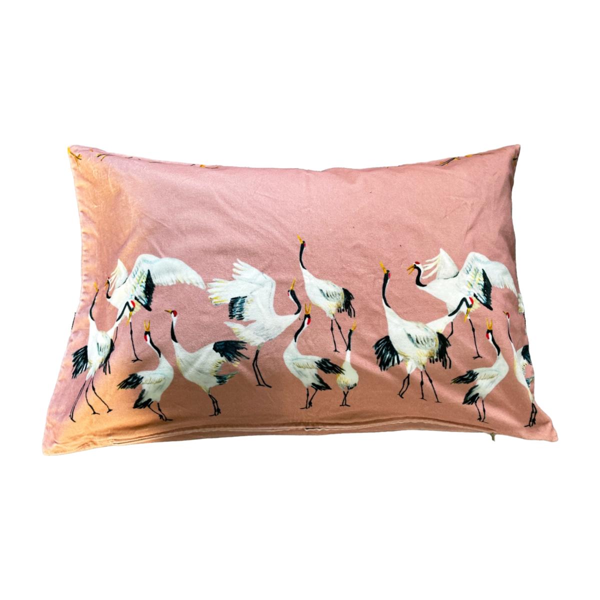 Rose Gold Velvet Cushion Japanese Cranes Catchii