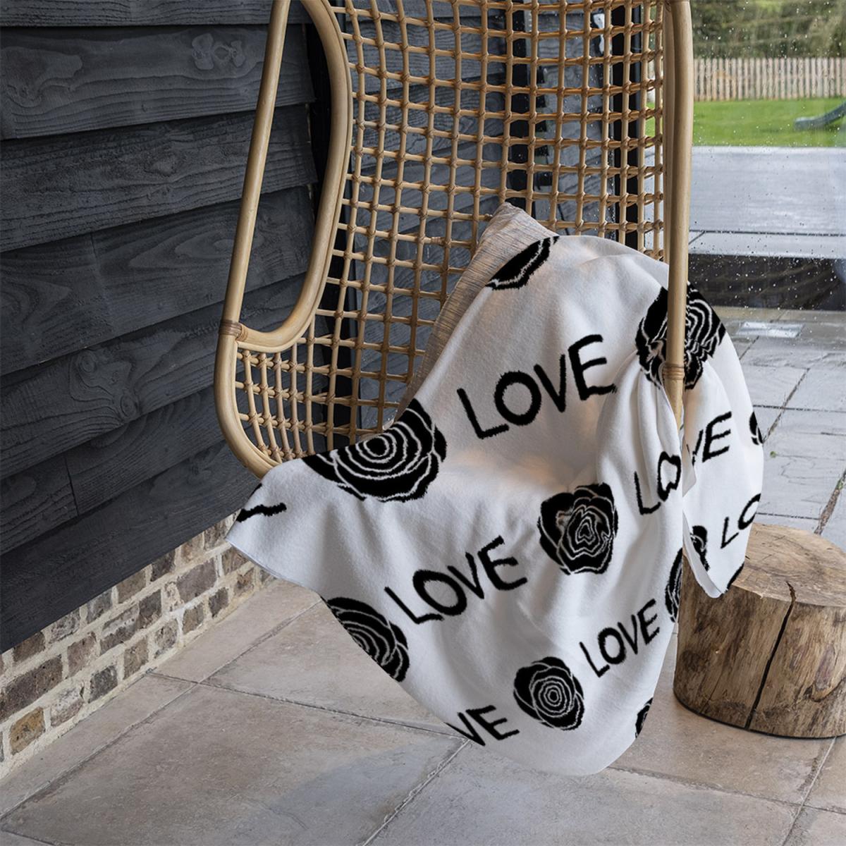 I love the bold black and white design of this throw, making it a versatile piece for both contemporary and monochrome interiors. It works particularly well layered over neutral sofas or beds to add contrast and personality. The 'Love' print offers a playful touch, making it suitable for casual, relaxed living spaces, while also functioning as an eye-catching accent in minimalist schemes. Practical styling tips include draping it casually over armchairs or folding it neatly at the end of a bed for a chic finish. Its straightforward colour palette makes it easy to incorporate into various colour schemes, adding a graphic element without overwhelming the space.