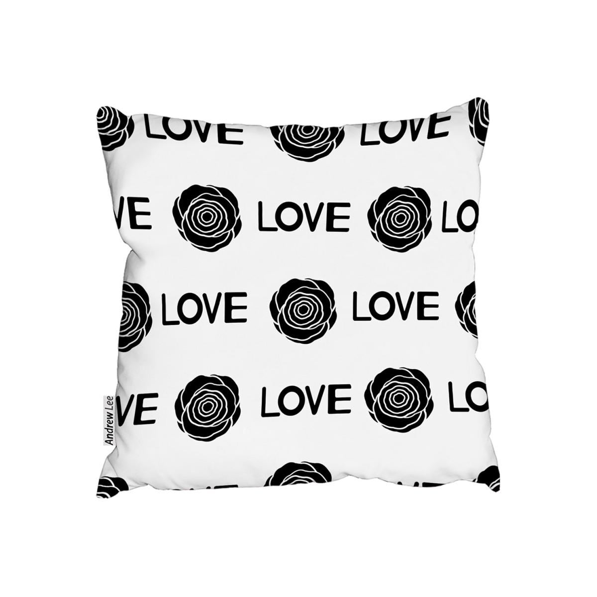 Rose Love Print Outdoor Cushion - Black / 60cm
