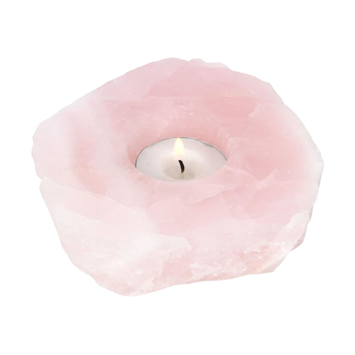 Rose Quartz Crystal Tealight Holder For Healing And Decor - Pink