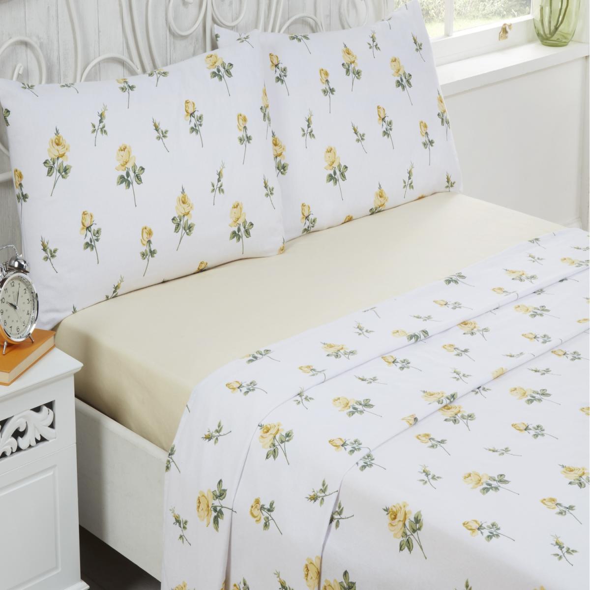 Rosebud Cotton Bed Cover Sheet Set - Lemon / Single