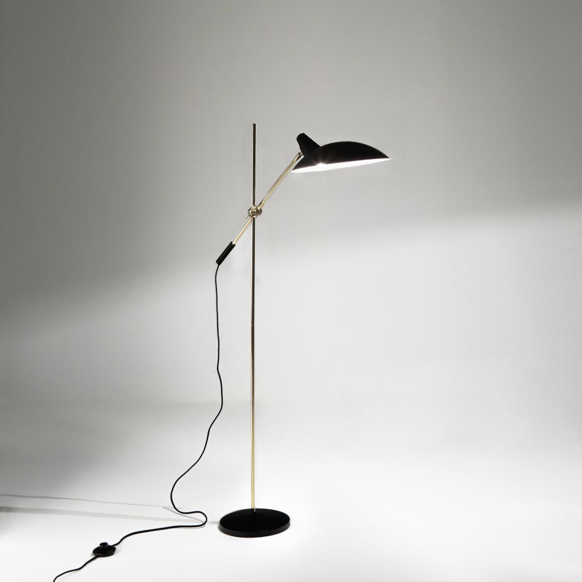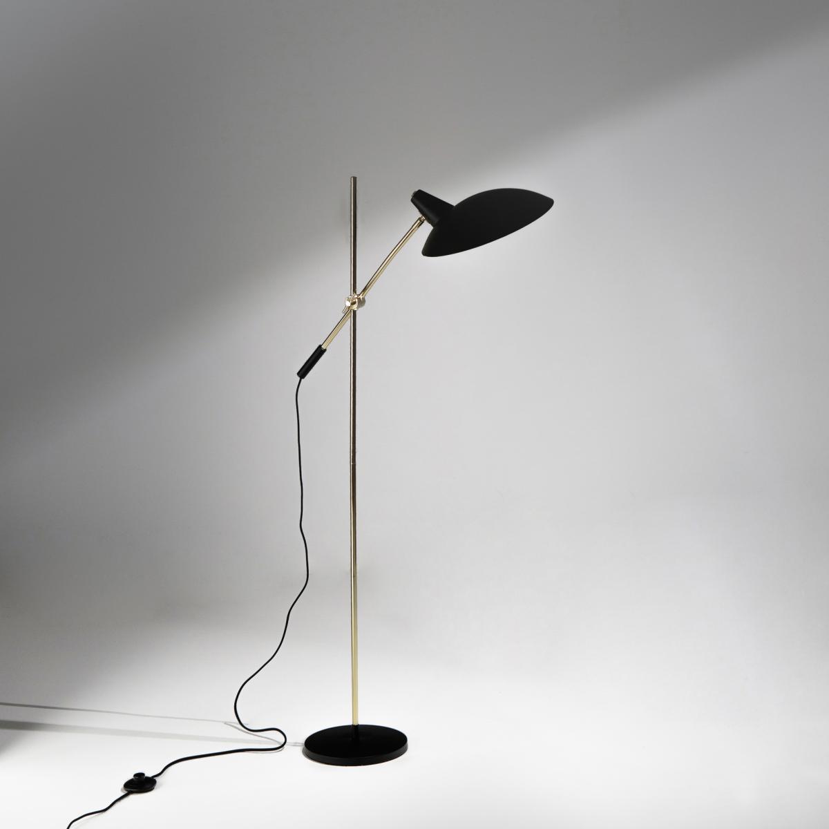 Vintage inspired metal lamp, with an epoxy paint and brass finish. Ideal next to a sofa or armchair.