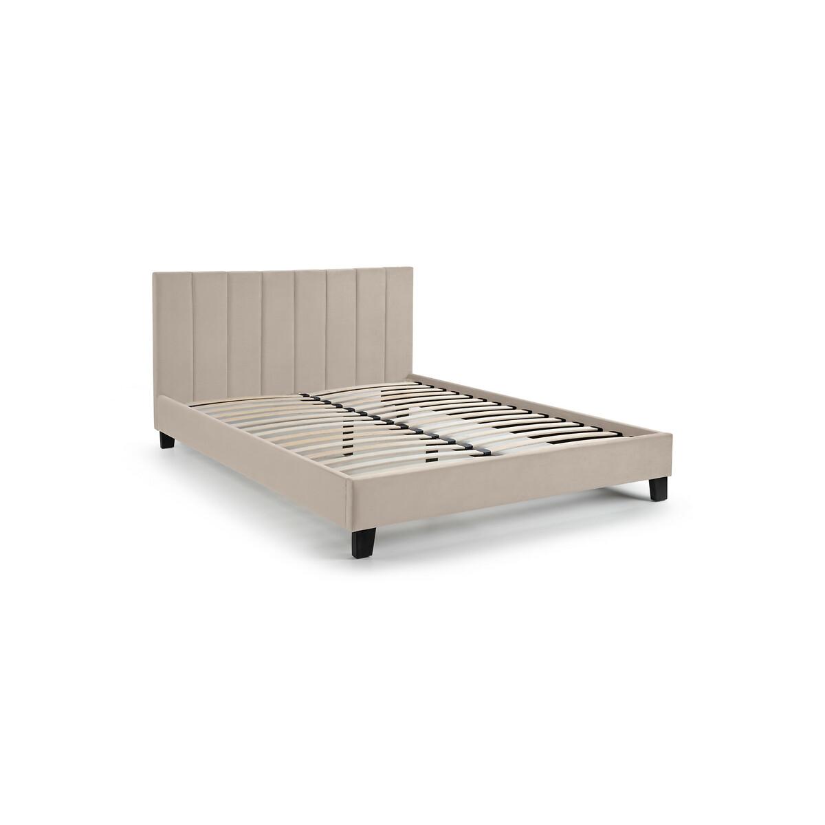 Bring timeless elegance to your bedroom with the Roselle velvet bed frame. Upholstered in soft-touch velvet fabric, it features a tall, padded headboard with refined vertical panelling, adding subtle texture and sophistication. The sleek black legs and low-rise frame create a modern, minimalist silhouette, perfect for both classic and contemporary interiors. Designed for comfort and everyday living, it’s a versatile choice for any bedroom, from compact guest rooms to master suites. Product details• Velvet upholstered• Low headbard with channel stitch detail• Low rise frame• Modern angular legs• Sprung slatted base• Wood and metal frame• Full assembly required• 12 month manufacturers warranty• Care Advice:Wipe clean with a soft cloth. Product Composition - 33% Wood, 33% Foam, 33% Fabric, 1% Metal. Product Dimensions Single 98.5 cm x 204.5 cm x 92.5 cm , Weight - 25.2 KGSmall Double 127.5 cm x 204.5 cm x 92.5 cm , Weight - 36.5 KGDouble 143 cm x 204.5 cm x 92.5 cm , Weight - 39.5 KGKing 158 cm x 214 cm x 92.5 cm , Weight - 38.8 KGPackaged Dimensions. Single:Package Dimensions - 198 cm x 27 cm x 27 cm, Weight 27 KGSmall Double: Package Dimensions - 200 cm x 31 cm x 29 cm, Weight 38.5 KGDouble:Package Dimensions - 199 cm x 37 cm x 27 cm, Weight 41.5 KGKing: Package Dimensions - 199 cm x 36 cm x 28 cm, Weight 41 KGThis product will be dispatched by one of our trusted suppliers. You’ll be contacted by their selected courier about your delivery. Please note: this product cannot be delivered to all Offshore Islands, Northern Ireland or Republic of Ireland.