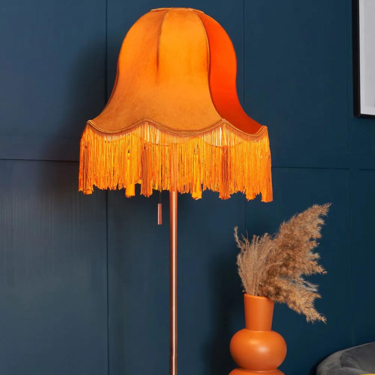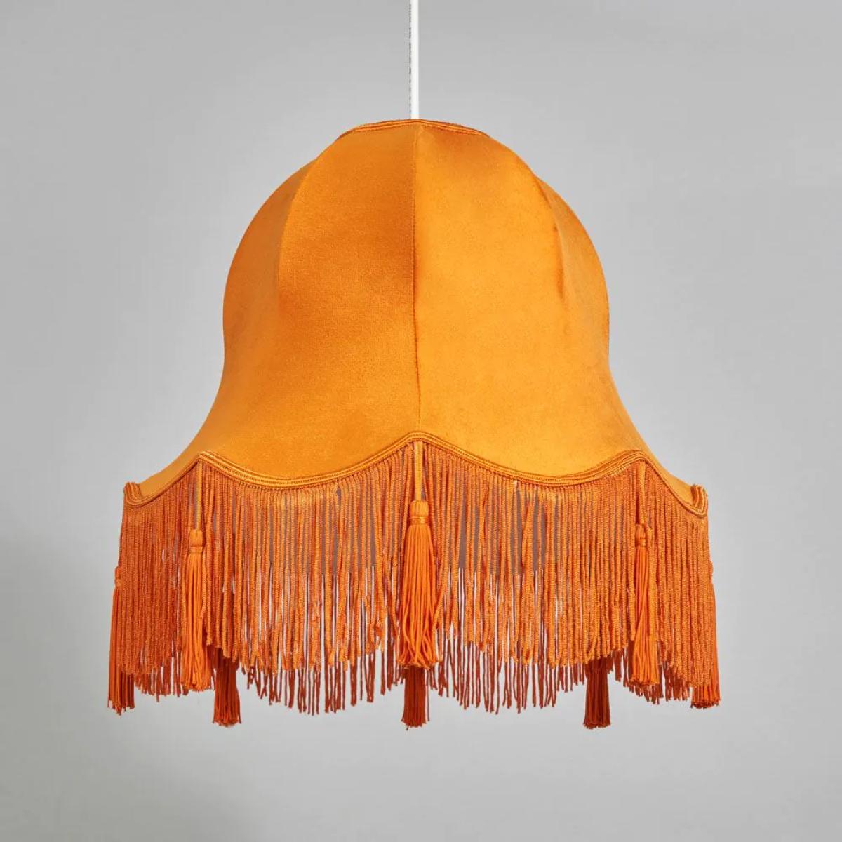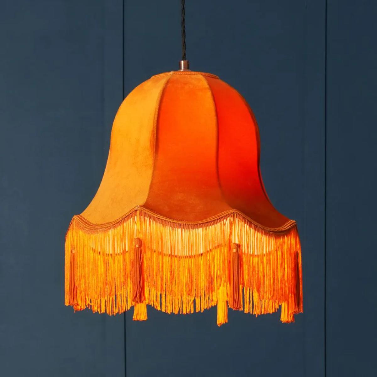 I love the burnt orange large shade because it adds a warm, vintage touch to any ceiling light setup. Its bold colour and playful fringe detail make it a statement piece that works particularly well in eclectic, boho, or retro interiors. For practical styling, it pairs beautifully with neutral wall tones or contrasting colours like deep blues or teals, allowing the shade to be the focal point. To enhance its impact, consider installing a dimmer switch, so you can control the ambience and highlight the rich orange hue. It's a versatile accessory that brings charm and character, especially in spaces seeking an inviting yet distinctive centrepiece.