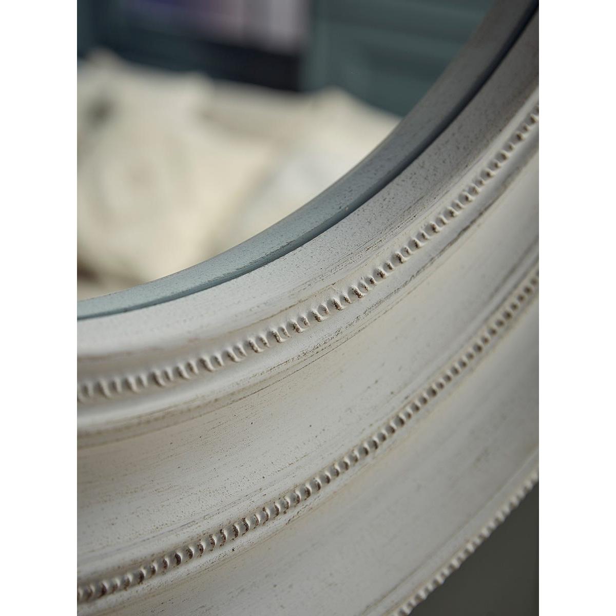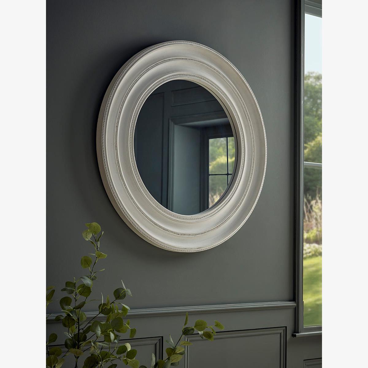 Intricate detailing sits delicately on this simple frame for a charming addition to a neutral toned mirror. Its soft edges add serenity and calm to your home, fitting perfectly in our French Blue trend. Hang in your hallway or above a mantel to create the illusion of space and light in your home.