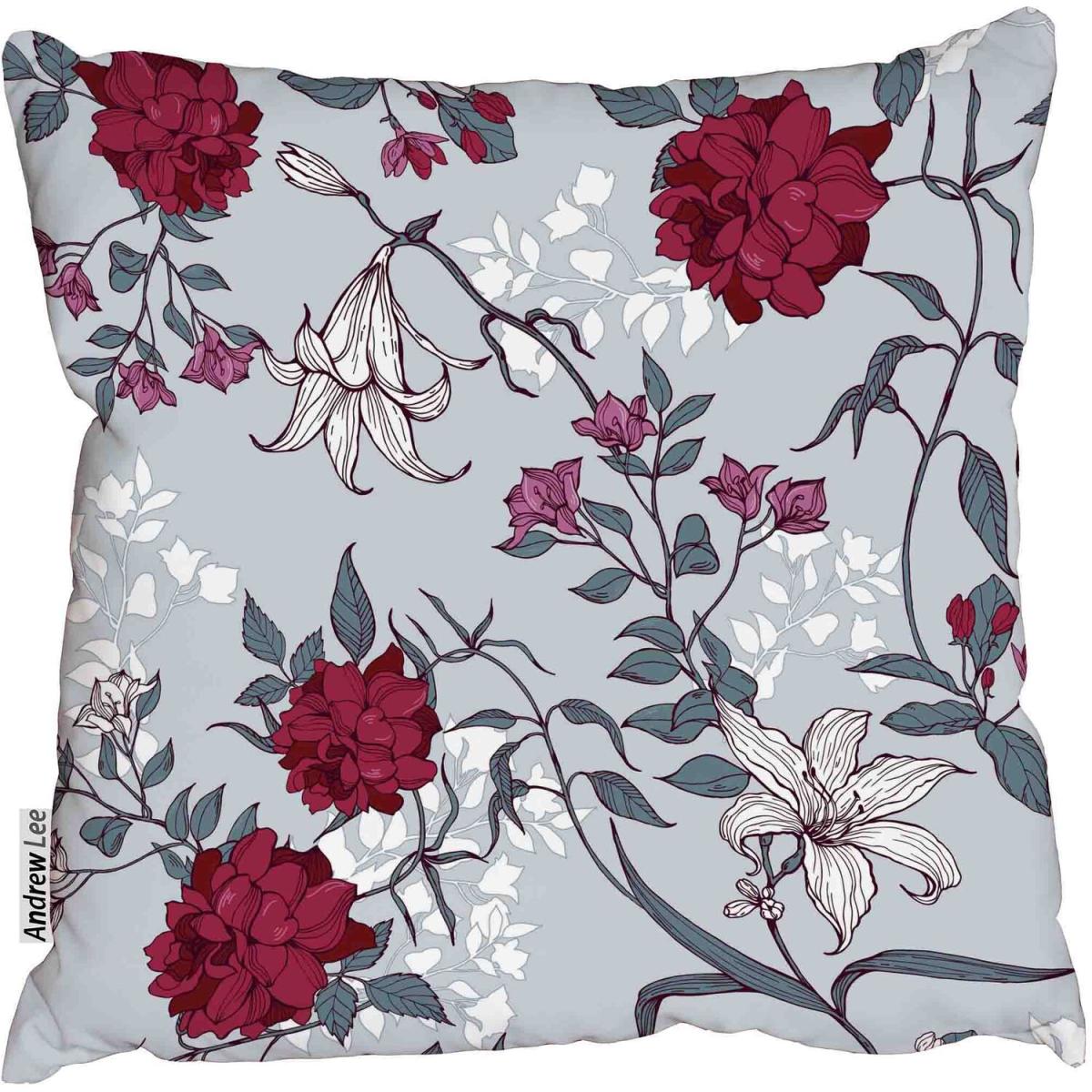Roses and lilies with leaves Outdoor Cushion - Red / 60cm