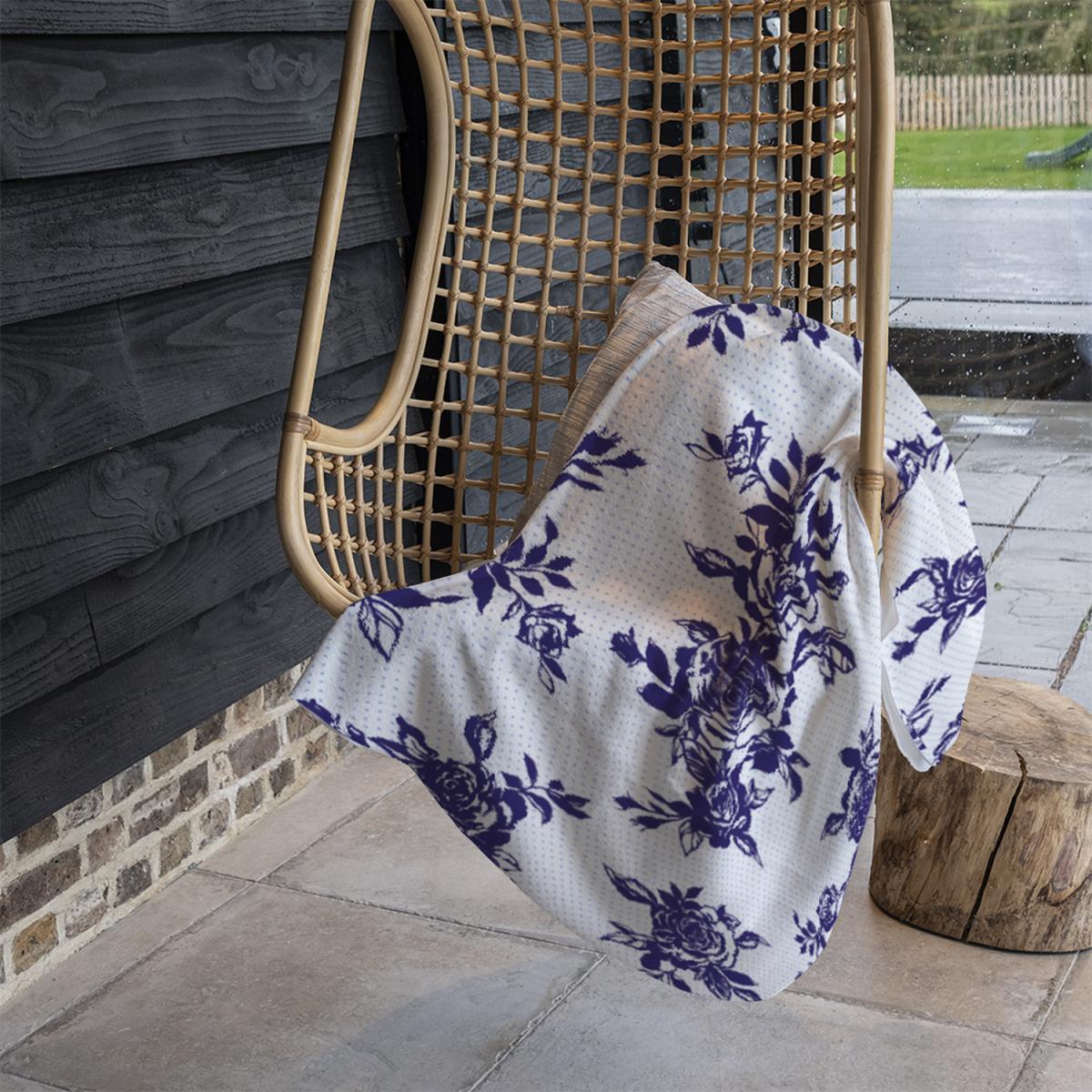 I love the roses print on this purple throw because it adds a charming yet contemporary touch to a variety of interiors. It works particularly well in eclectic, boho, or vintage-inspired spaces where the pattern and colour can serve as a statement piece. Practical styling tips include draping it casually over a crisp armchair for a cosy vibe or folding it neatly across the end of a bed to inject some personality. The bold floral pattern paired with purple makes it versatile enough to complement neutral palettes while also standing out as a focal point in more colourful schemes.
