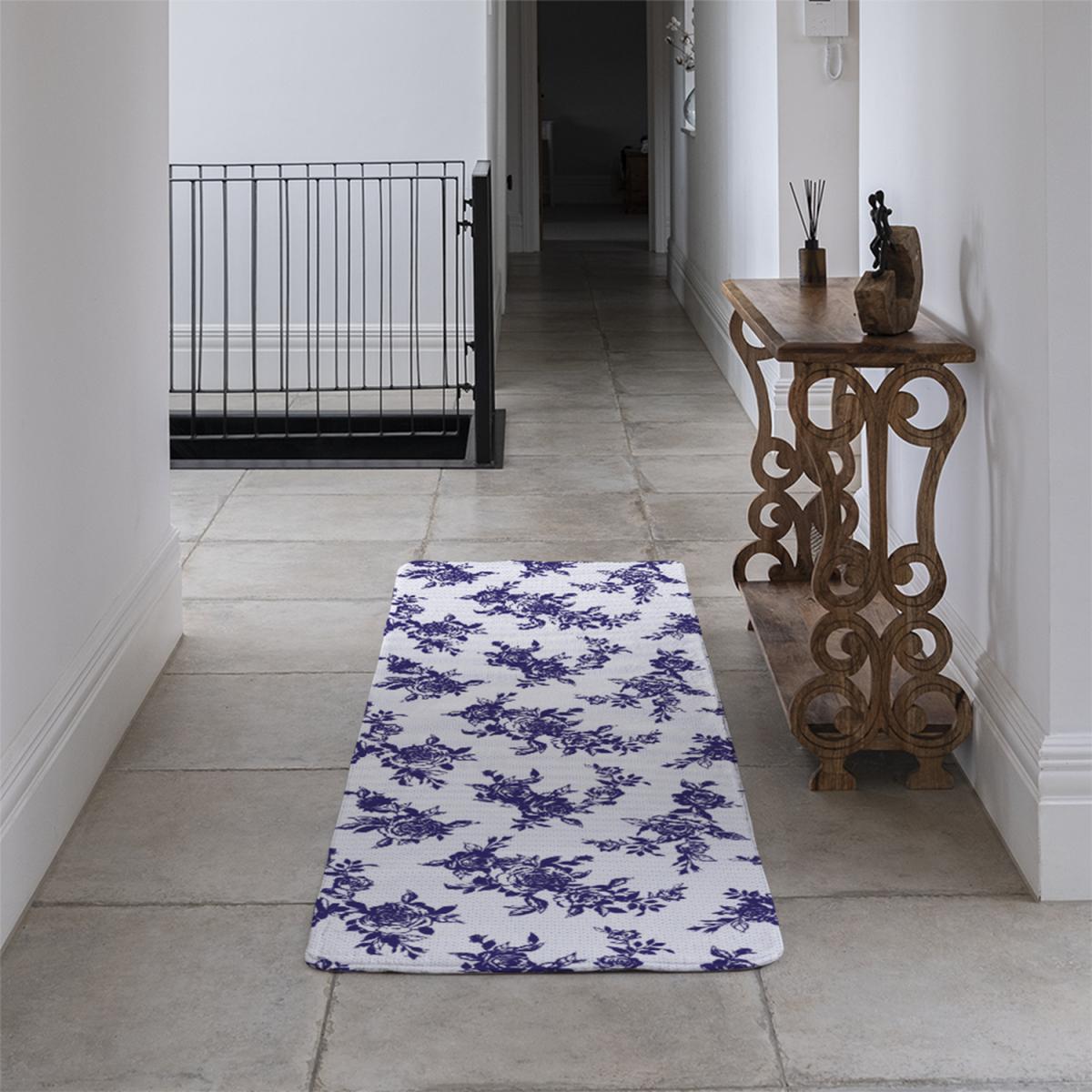 I love this runner because of its playful yet stylish design-combining roses with polka dots in a versatile blue and white palette, it adds a fresh look to many interiors. It works particularly well in kitchens, hallways, or narrow spaces where a Scandinavian or coastal vibe is desired. For practical styling, consider pairing it with neutral floors and understated furniture to let the pattern stand out, or layer it with complementary textiles like cushions or throws in matching or coordinating shades for a coordinated look. It’s durable enough for high-traffic areas, making it both a stylish and functional choice.