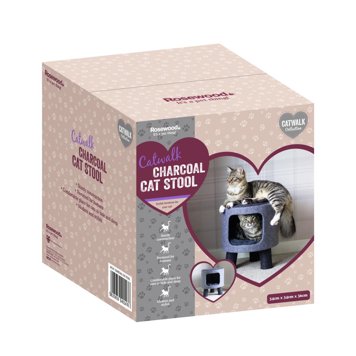 * Crafted from felt * Stylish decor piece * Suitable for kittens and small cats The Rosewood Felt Charcoal Cat Stool is a clever mix of modern style and cosy comfort for your cat. Made from soft felt with a smart charcoal finish, it looks right at home in any living space. Perfect for kittens or small cats, it offers a snug little hideaway they’ll love curling up in. It’s both a seat for you and a den for them – the best of both worlds! Easy to assemble, with full instructions included. A stylish solution for pet lovers who don’t want to compromise on their décor.