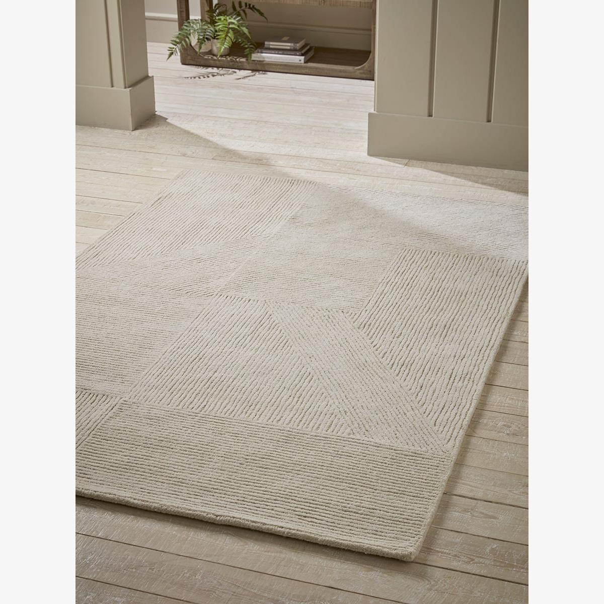 I love this rug for its understated elegance and versatility. The neutral tone allows it to seamlessly fit into a range of interiors, from modern minimalist to traditional cosy spaces. It works particularly well in living rooms or bedrooms where a subtle, calming base is needed. Practical styling tips include layering it under a larger, statement piece of furniture to anchor the room, or pairing it with textured cushions and throws for added warmth and depth. Its simple pattern and colour mean it can be combined effortlessly with both natural fibres and darker, more contrasting pieces, making it a great all-rounder for a variety of decorating styles.
