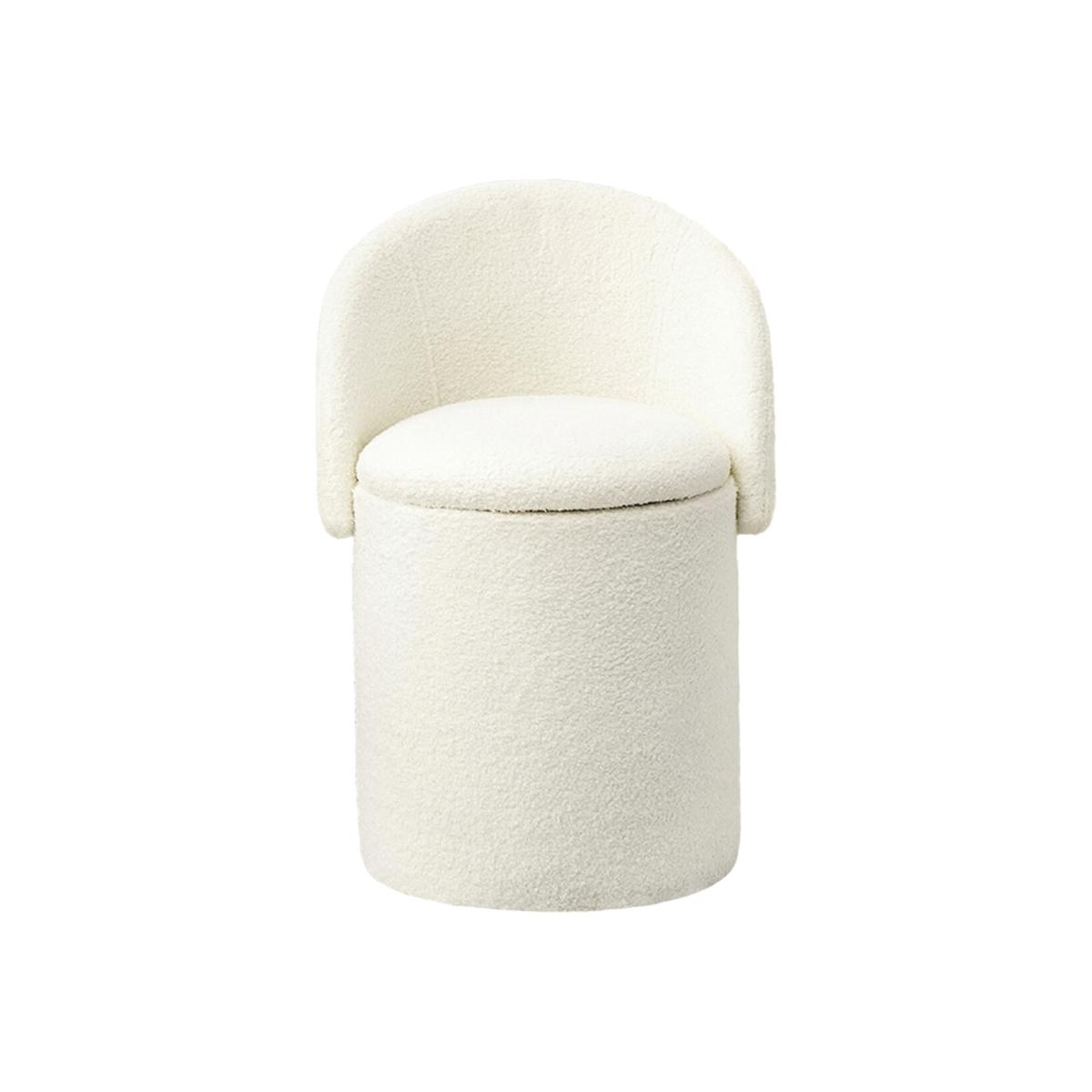 I love this stool for its practical yet stylish design - the multi-functional aspect makes it a versatile choice for various spaces. Its clean white finish allows it to work seamlessly in contemporary, minimal, or even more eclectic interiors. The cosy, rounded shape gives it a welcoming vibe, perfect for use as extra seating or a cosy footstool. A great styling tip is to position it near a statement chair or next to a reading nook, adding a touch of texture with soft throws or cushions. Its hidden storage makes it especially useful in smaller rooms or clutter-prone areas, keeping essentials close at hand without sacrificing style.