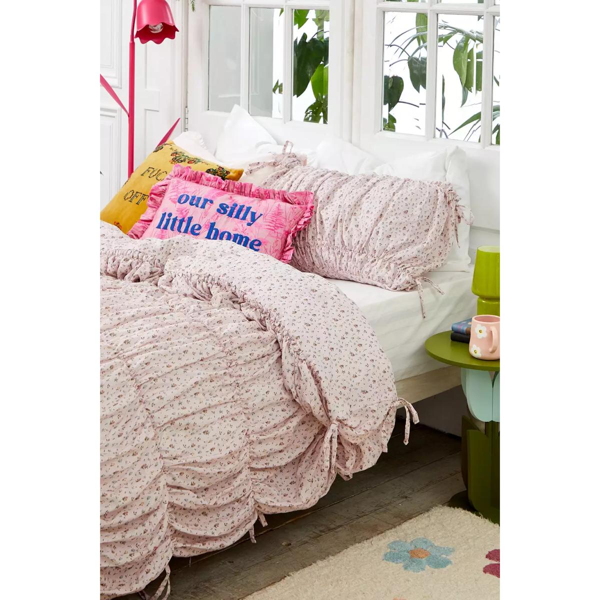 Rosie Cinched Floral Duvet Set - Pink Double at Urban Outfitters