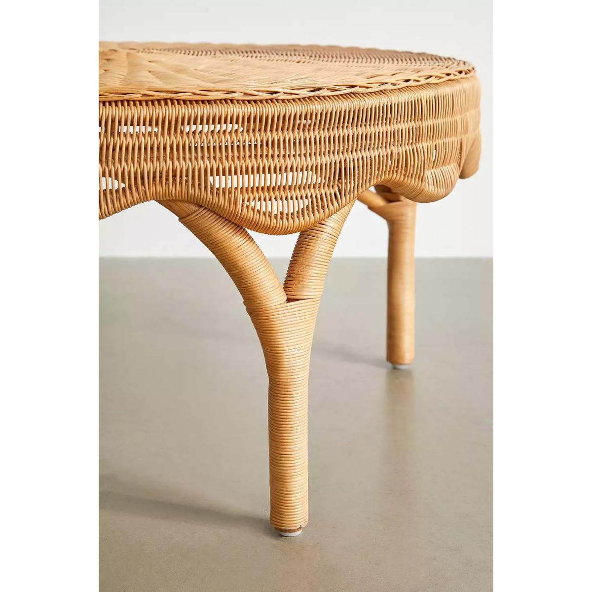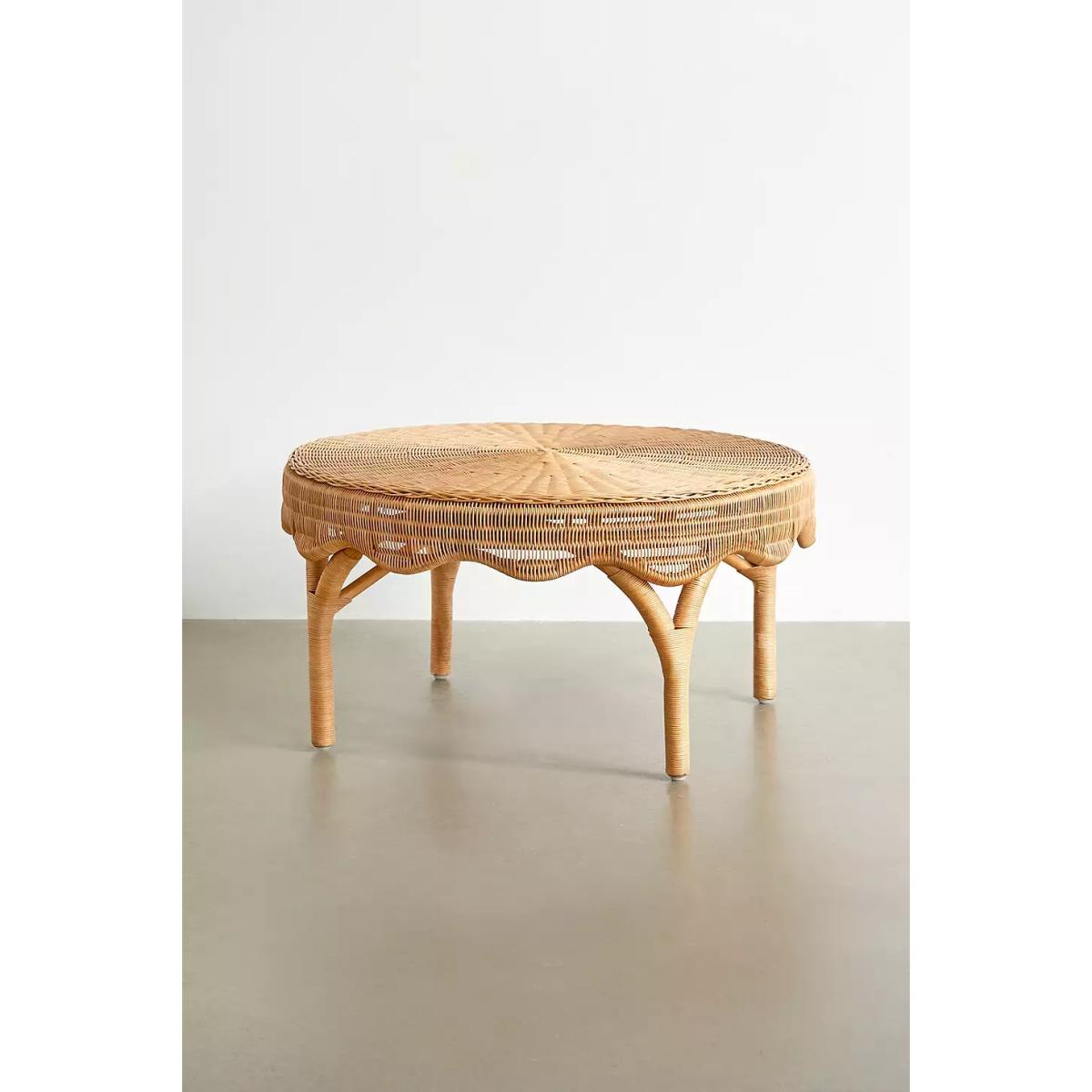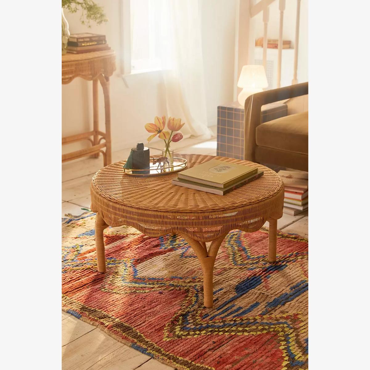Inject some boho vibes into your interiors with this round coffee table made from handwoven rattan. Pretty coffee table with a nature-inspired construction, perfect for adding a warm and inviting element to your space. Features a rounded design, cutesy scalloped edge, short legs and a woven flat top. *Online return only. This item cannot be returned in-store. Please note furniture items currently cannot be shipped to Northern Ireland or The Republic of Ireland. Delivery of large furniture items may take 2-3 weeks and are therefore not eligible for Next Day Delivery.* **Content + Care** \- Rattan \- Natural material construction may have some variation due to the process \- Wipe clean **Size** \- Dimensions: W: 81.2cm x H: 41.9cm \- Leg height: 29.2cm \- Clearance: 36.8cm
