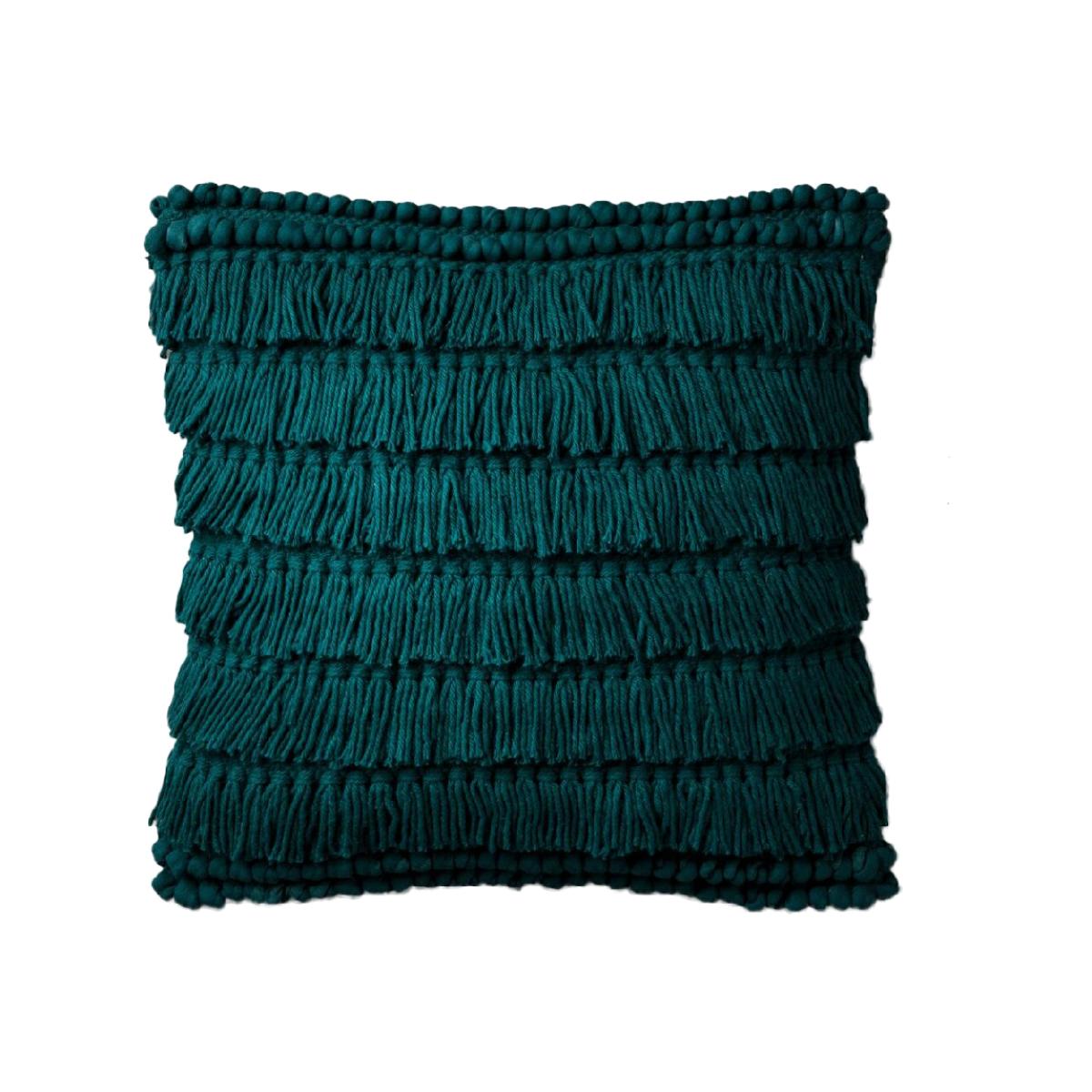 I love this little cushion for its playful texture and vibrant teal tone-it would bring a pop of colour to both modern and eclectic interiors. Its fringed and pom-pom detailing adds a cosy, tactile element, making it perfect for sofas, armchairs, or even beds. I recommend pairing it with neutral shades to let it stand out or mixing it with other bold patterns for a lively, layered look. Practical styling tips include using it as an accent piece on a textured fabric sofa or layering it with other cushions in different sizes and textures to create an inviting, curated feel. It’s a versatile accessory that can lift the overall vibe of a casual lounge or a cosy reading nook.