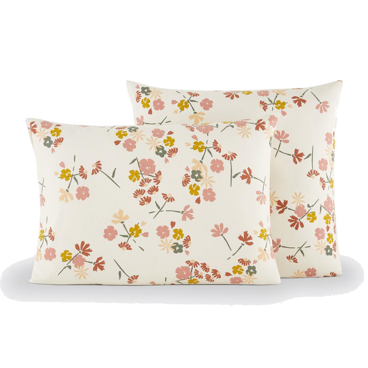 Soft and warm... the Rosine pillowcase features flower seedlings on a white background in cotton flannel.