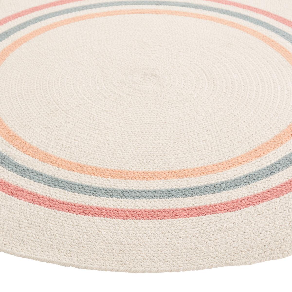 A round shape with coloured circle patterns: handmade, the Rosiny rug is ideal for a child's room and will create a cosy atmosphere. Made of pure cotton, it insulates against the cold and provides comfort and softness.
