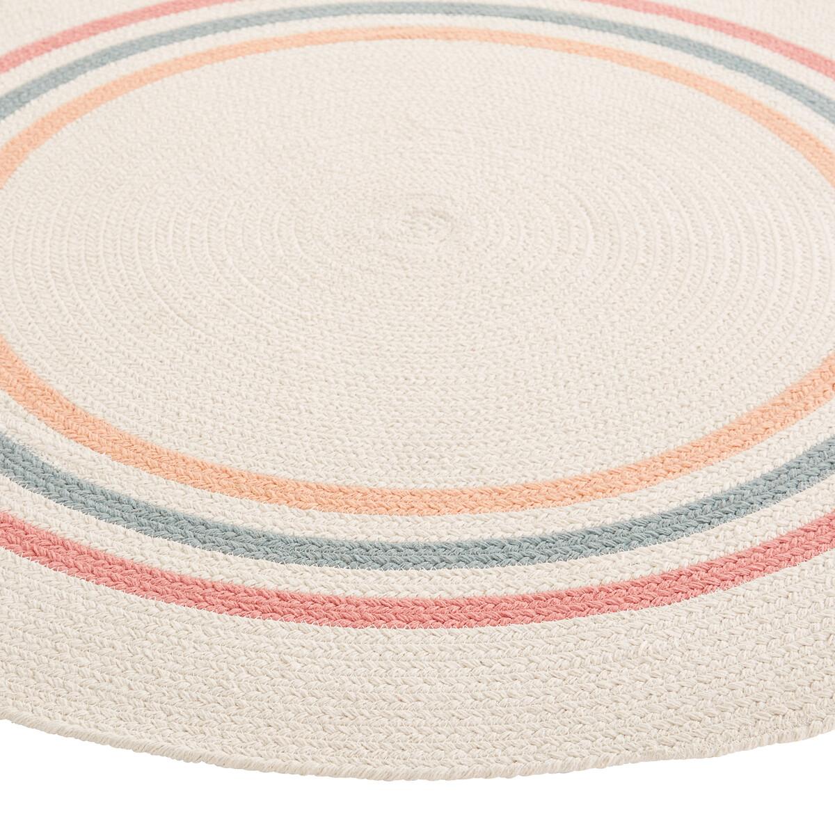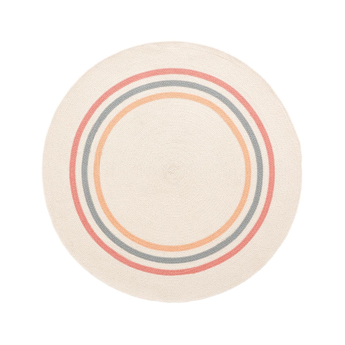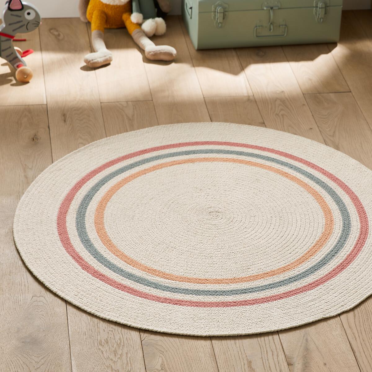 A round shape with coloured circle patterns: handmade, the Rosiny rug is ideal for a child's room and will create a cosy atmosphere. Made of cotton, it insulates from the cold and provides comfort and softness. Product Details • 100% cotton • 1200g/m2 • Artisanal craftsmanship. Quality Info • Cotton is soft to the touch and fluffy. The cotton rug is easy to maintain, it will also be a good thermal and sound insulator. Dimensions • Diameter: 100cm • Thickness: 0.5cm