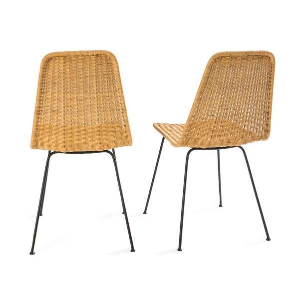 I love these chairs for their blend of natural materials and contemporary form, making them quite versatile in a range of interiors. They work particularly well in Scandi-inspired settings or boho styles, where their woven rattan accents add warmth and texture. Practical styling tips include pairing them with a simple, streamlined dining table to highlight their craftsmanship, and adding cushions for extra comfort and colour. Their steel legs give a sleek, modern touch that can ground eclectic spaces or complement minimalist schemes. Overall, a great choice for creating a welcoming, laid-back dining area that balances style and function.