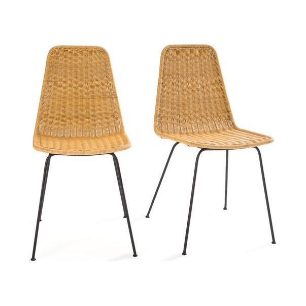 Roson Chairs in Steel and Woven Rattan, Set of 2