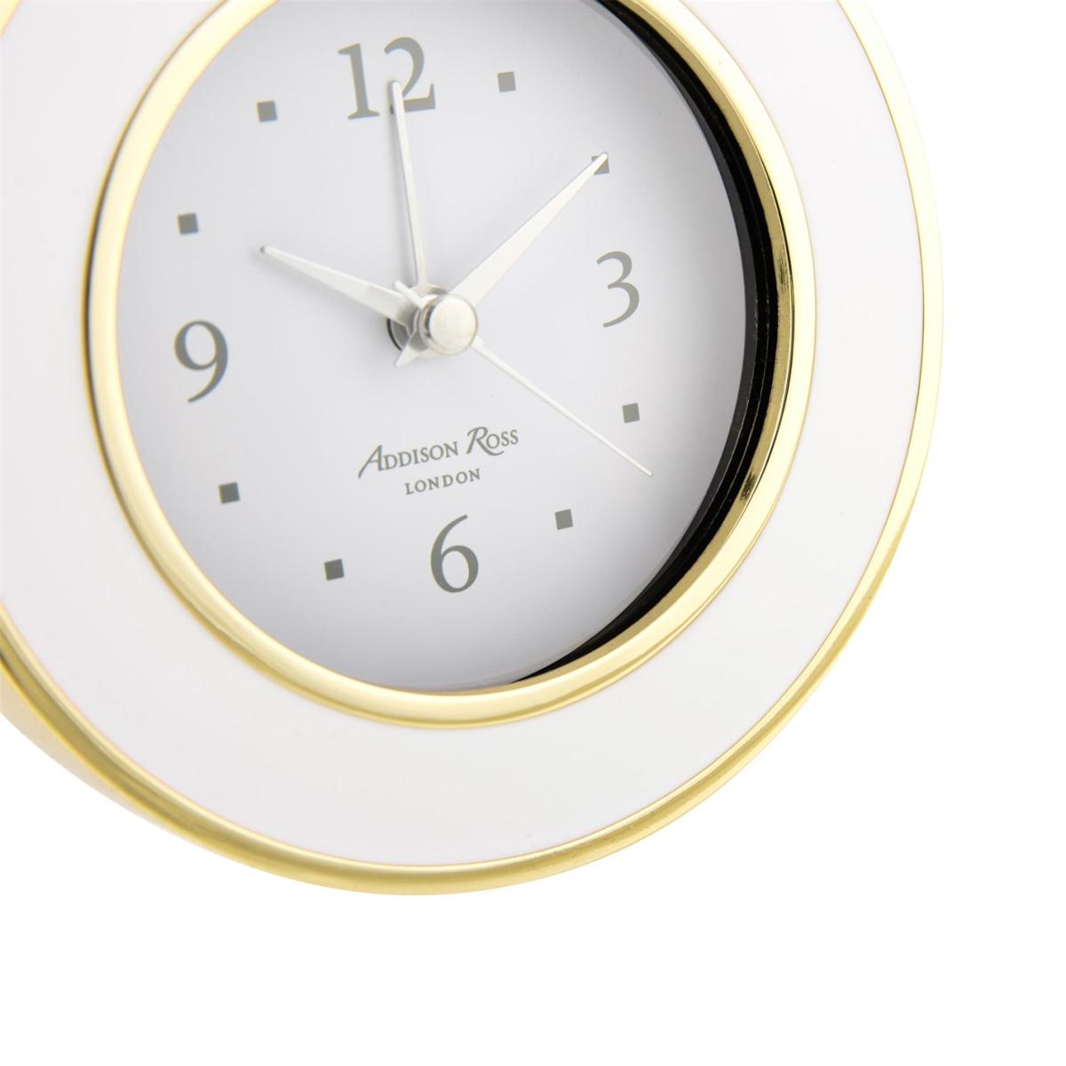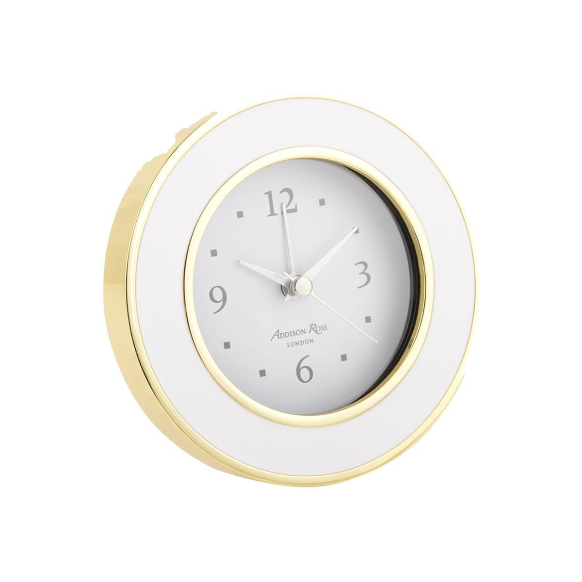 Keep on track with this alarm clock from Addison Ross. Crafted from enamel, this clock has a beautiful gold plated edge and is circular in shape. With an included alarm function, it has a delicate clock face and its small size is the perfect fit for beside tables.