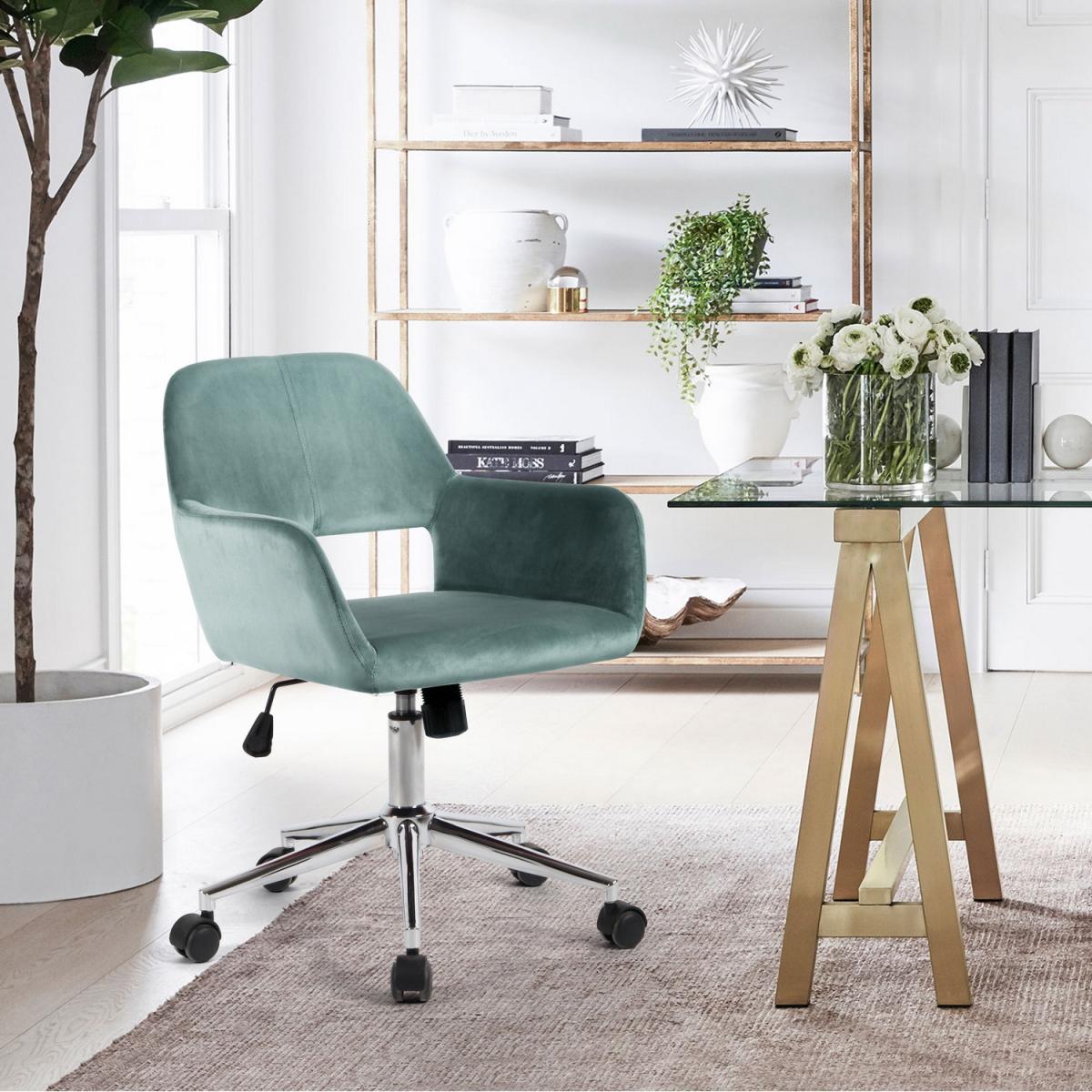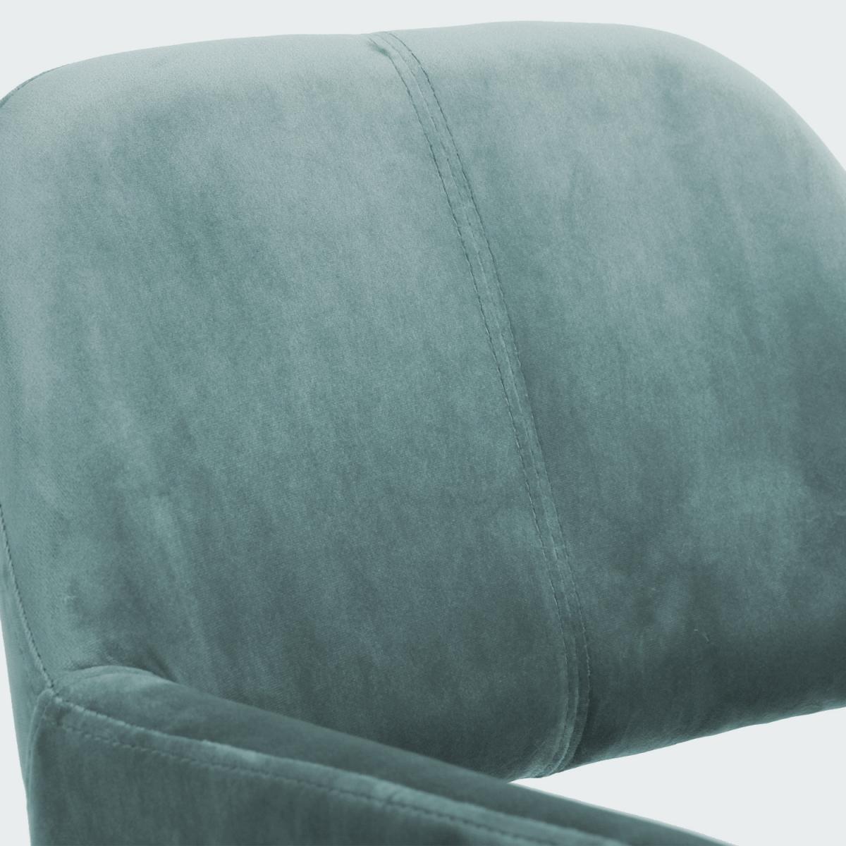 The backrest, with a recess, emphasizes the modern style of the office chair at the same time offering sufficient support for your back. Armrests are the perfect place to rest your arms and relax. The spacious seat is upholstered in silky soft velour and padded with high-density foam to provide a comfortable and soft seating experience. The gas spring under the seat allows you to adjust the seat to the height that suits you best, so you can sit comfortably on the work stool with backrest and enjoy a cup of coffee or tea at the same time.