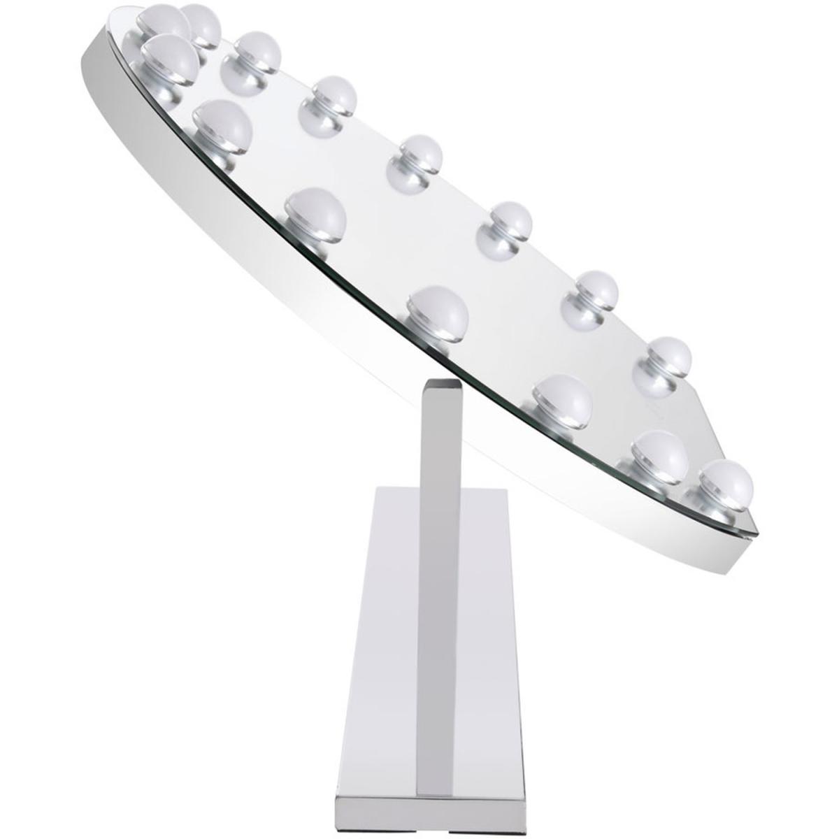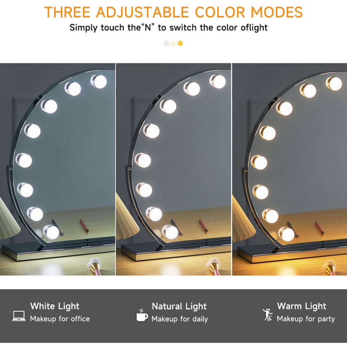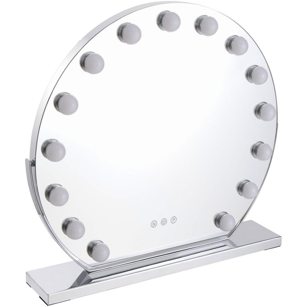 Indulge in the glamour of Hollywood with our Rotatable Round Hollywood LED Vanity Mirror. Crafted with opulence in mind, this mirror exudes an exquisite and expensive Hollywood style, elevating your vanity setup to new heights. Made from premium silver glass and durable metal, it promises both luxury and longevity. Experience effortless control with 3 touch sensors, allowing you to adjust lighting to your preference. The mirror stands tall on a heavy, sturdy silver metal base, ensuring stability. Plus, its rotatable design allows you to find the perfect angle for flawless makeup application every time.