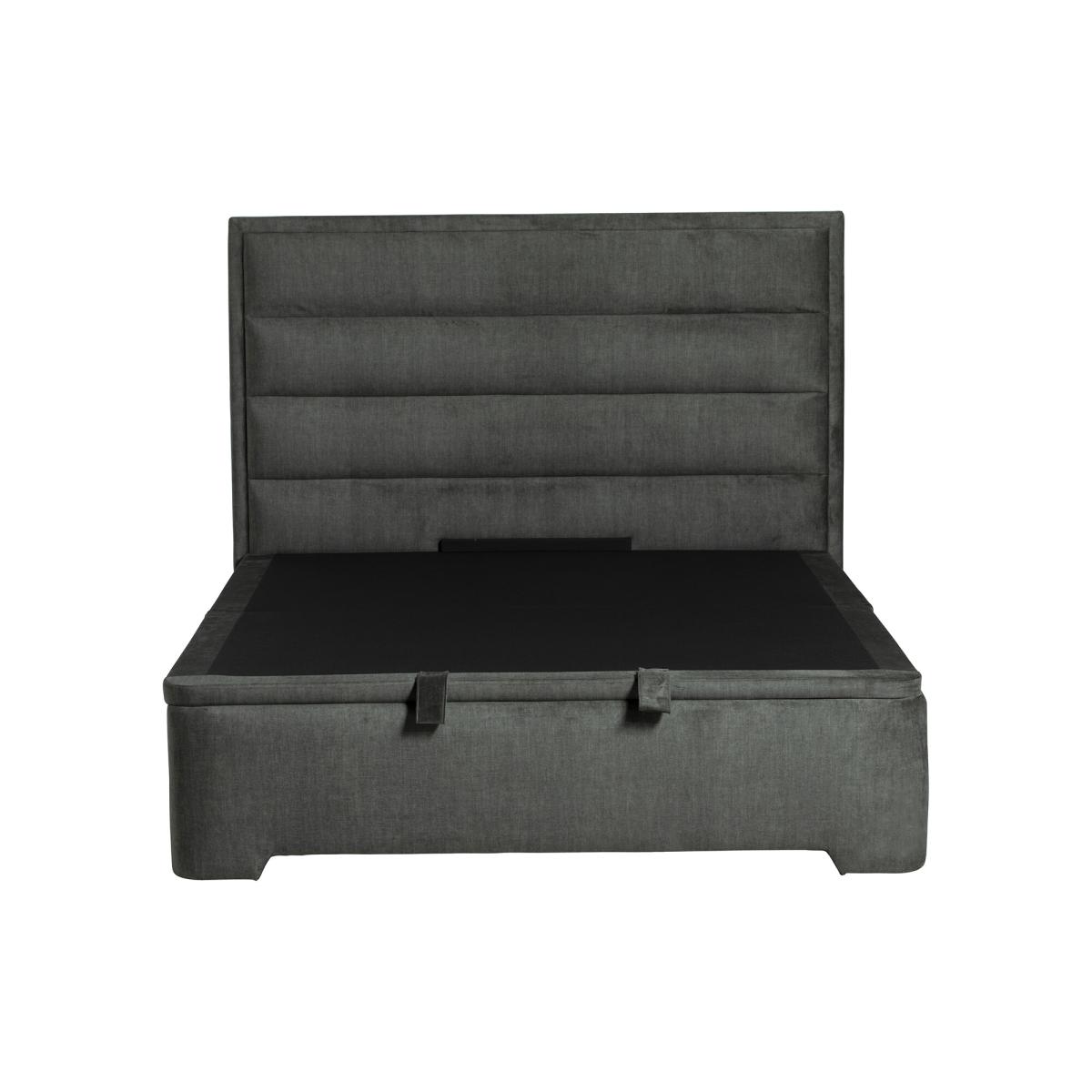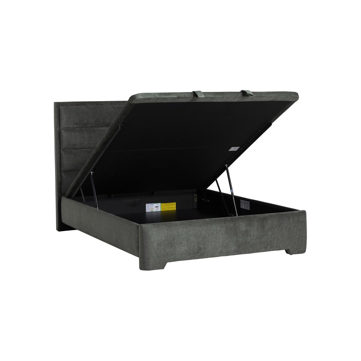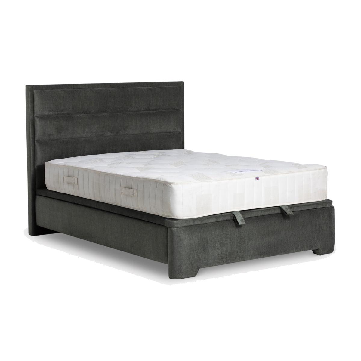Elevate your bedroom with our Rothbury Storage Ottoman Bedframe in King size. Boasting a luxuriously padded headend with a modern horizontal panel design and a slim border, it adds sophistication to your space. Utilize the generous floating floor ottoman storage area, easily accessible with the hydraulic assisted lift-up system. Complete with a platform-style ventilated base and dual lift-up straps for ease, it's a chic and practical choice for any home.