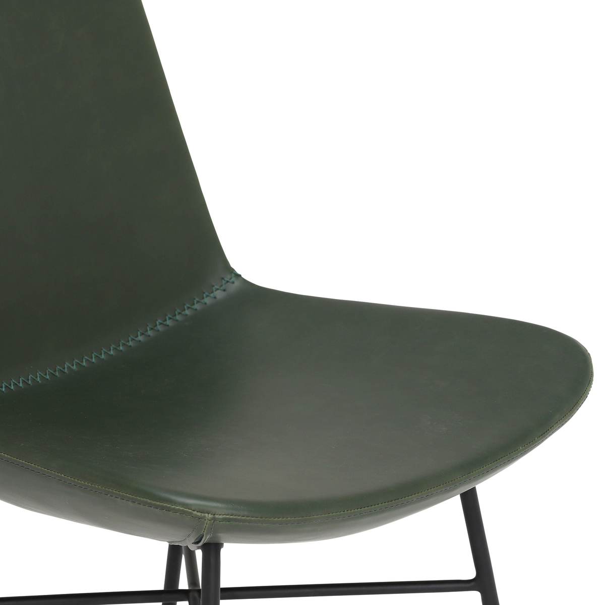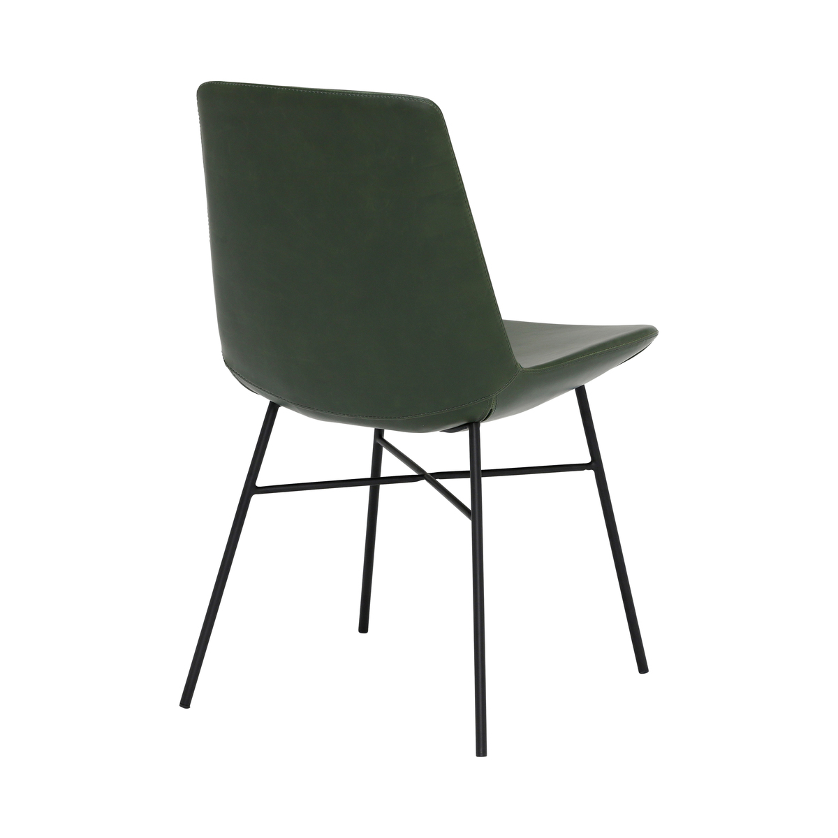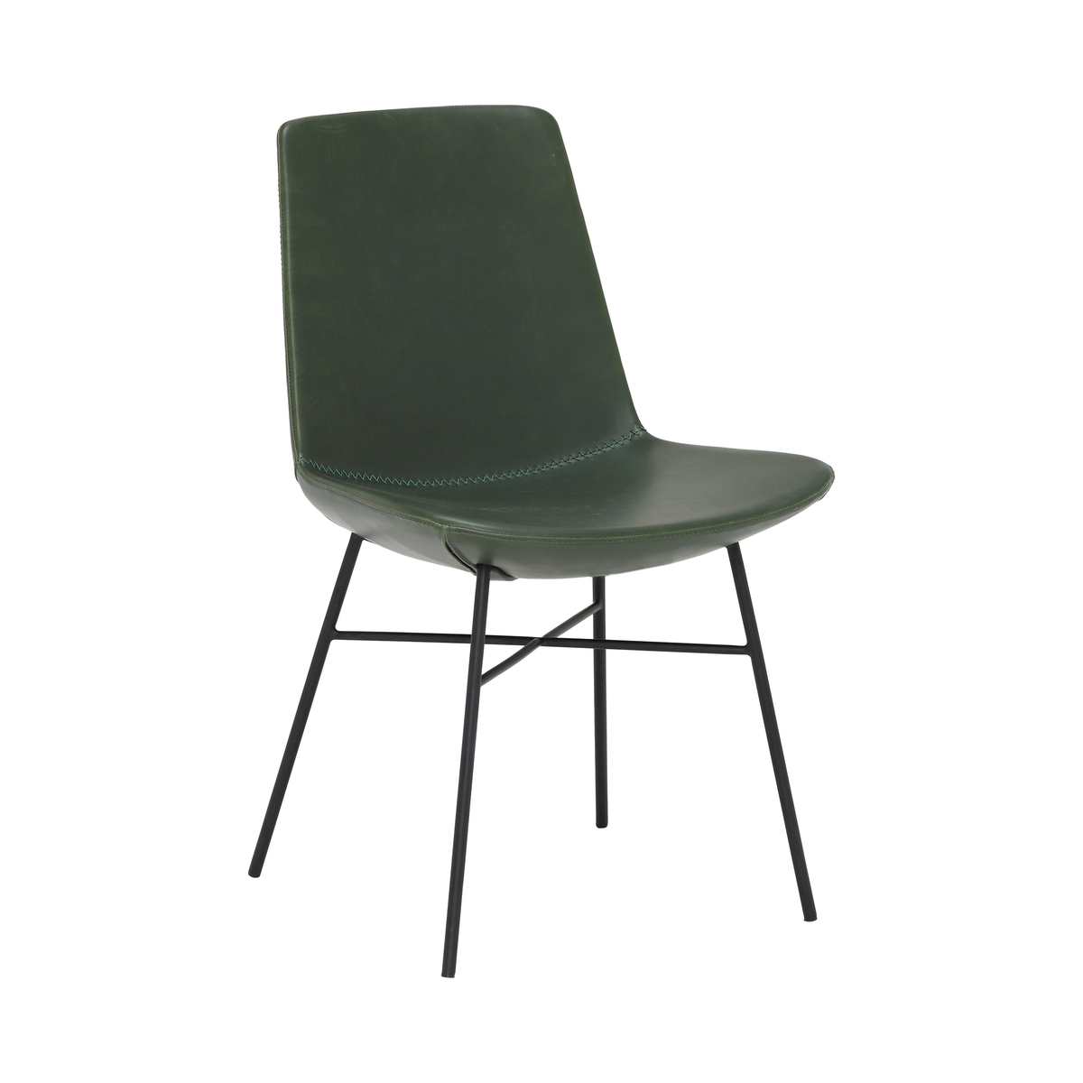 Beautifully upholstered in smooth green faux leather, the Rothko dining chair is the perfect balance of fun and modern style. Though clean and simple, it boasts trendy design details such as exposed stitching and a cross bar base. Ideal for creating a relaxed, urban or eclectic dining space, the contemporary chair features black metal legs of slim proportions, providing a minimalist yet industrial feel. Foam cushions the moulded seat for lasting comfort through mealtimes, meaning each bite is as enjoyable as can be.