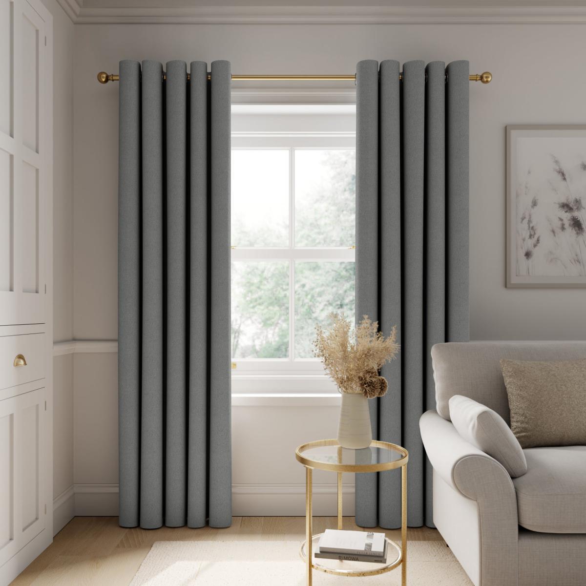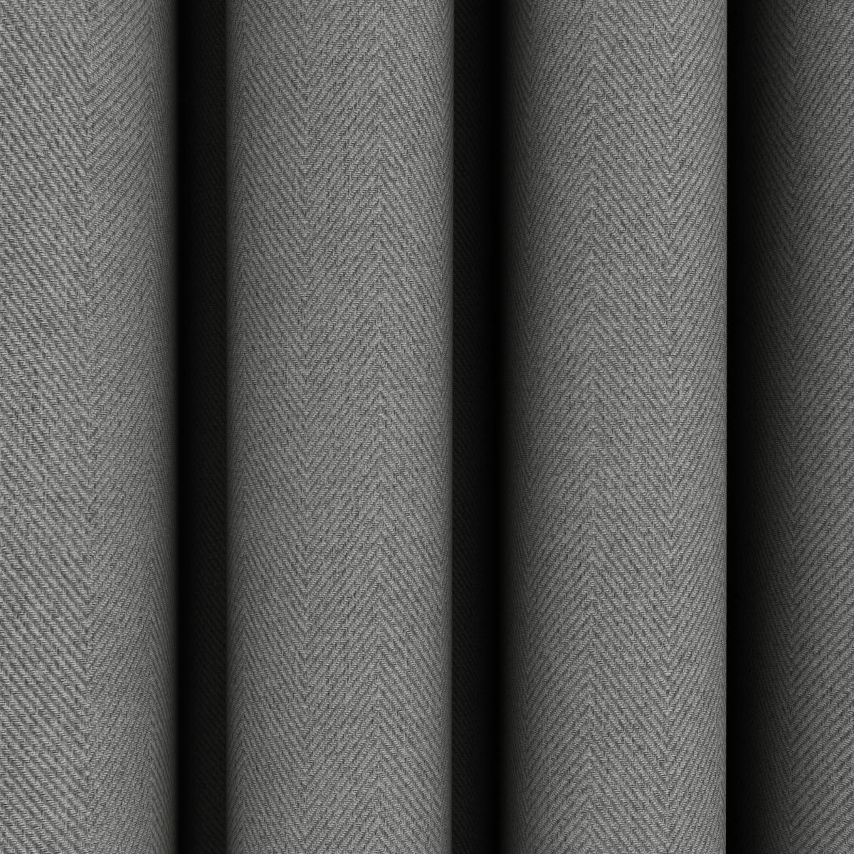 Dress your windows with this modern pair of blackout eyelet curtains in a clean steeple grey colour. With a detailed herringbone weave, these subtly patterned curtains appear plain and simple however the intricate geometric weave adds detail and decoration to your home. The stainless-steel eyelets look stylish and strong ensuring durability, but this simple header also allows an easy method to install. Blackout coating is also great for your interior conditions as it offers an efficient feature of temperature control. By keeping your home cool in the summer and warm in the winter you can trust these curtains to keep you comfortable in your space as well as minimising noise and blocking out light to make sure you get a peaceful night’s sleep.