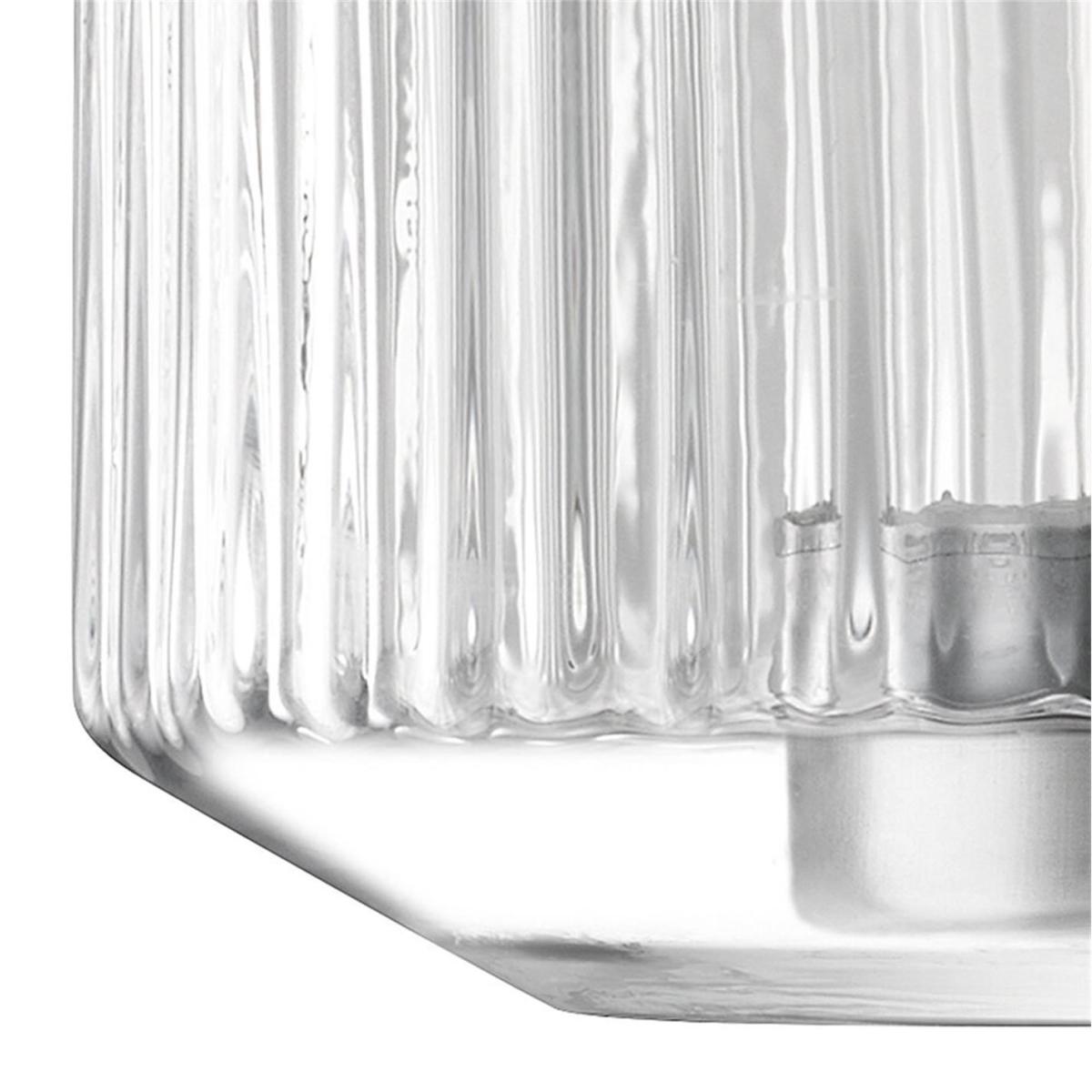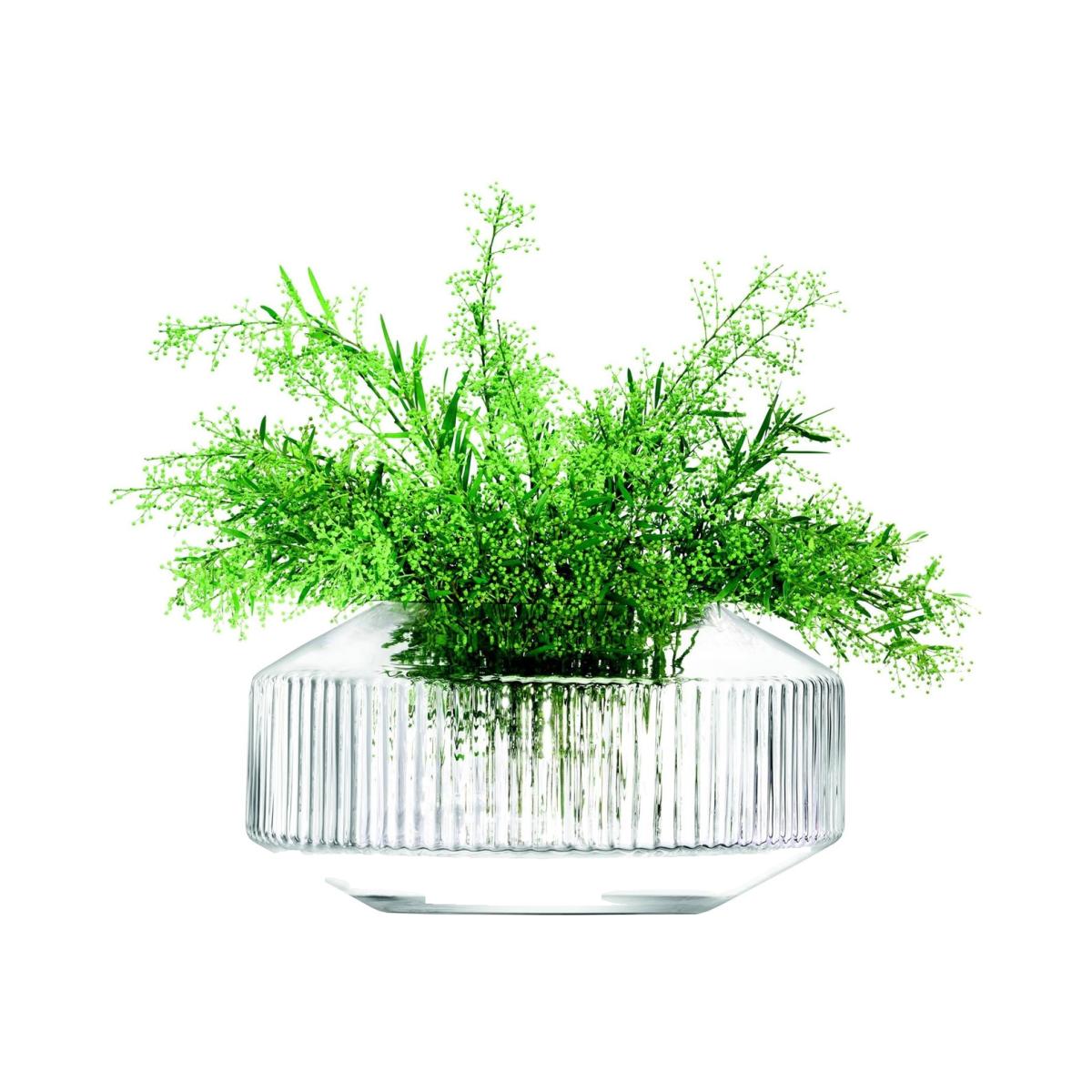 Make a striking statement with this stunning, mouth-blown vase expertly crafted from a choice of clear or sapphire blue glass. This beautiful wide vase makes the most of its angles and the band of corrugated texture takes inspiration from contemporary architecture. Please note that due to its handmade nature, the size of each piece may vary slightly.
