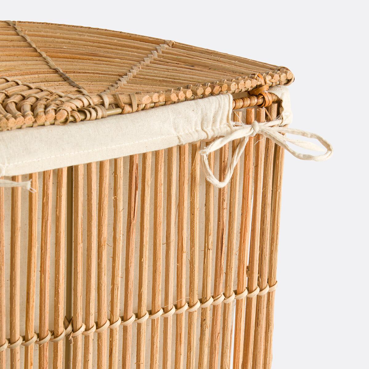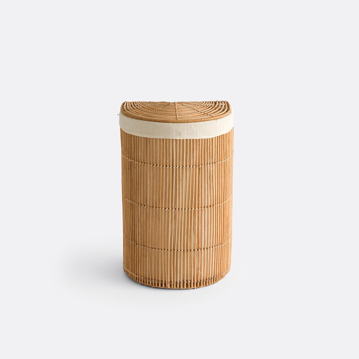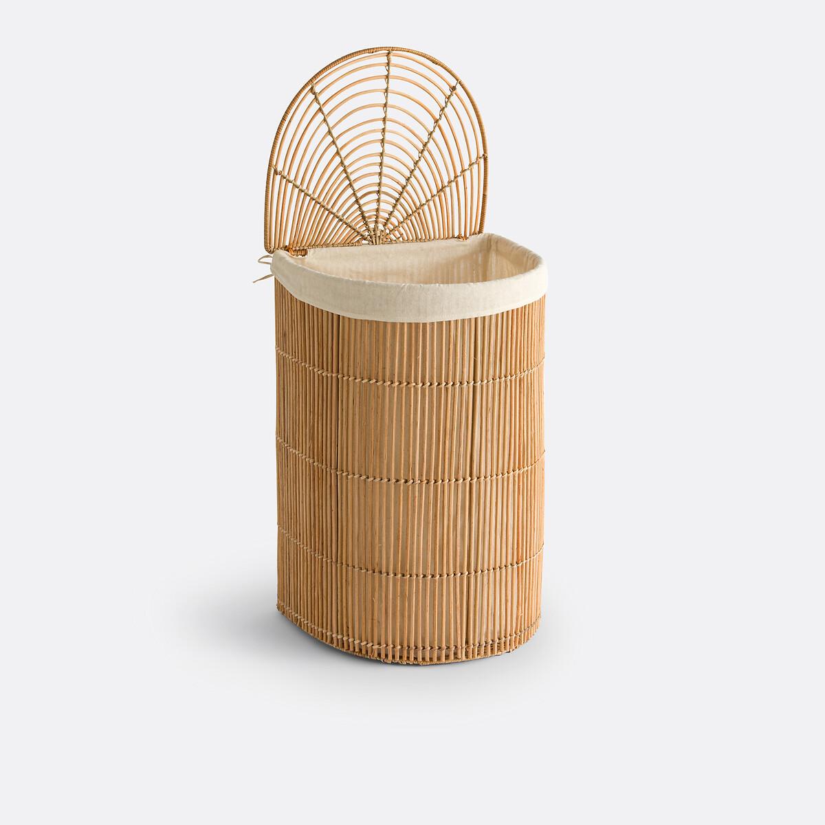 Aesthetic and practical. The Rotuni laundry basket is made of rattan for the decorative touch. Its advantages: a removable lid and inner fabric to hide what's inside.