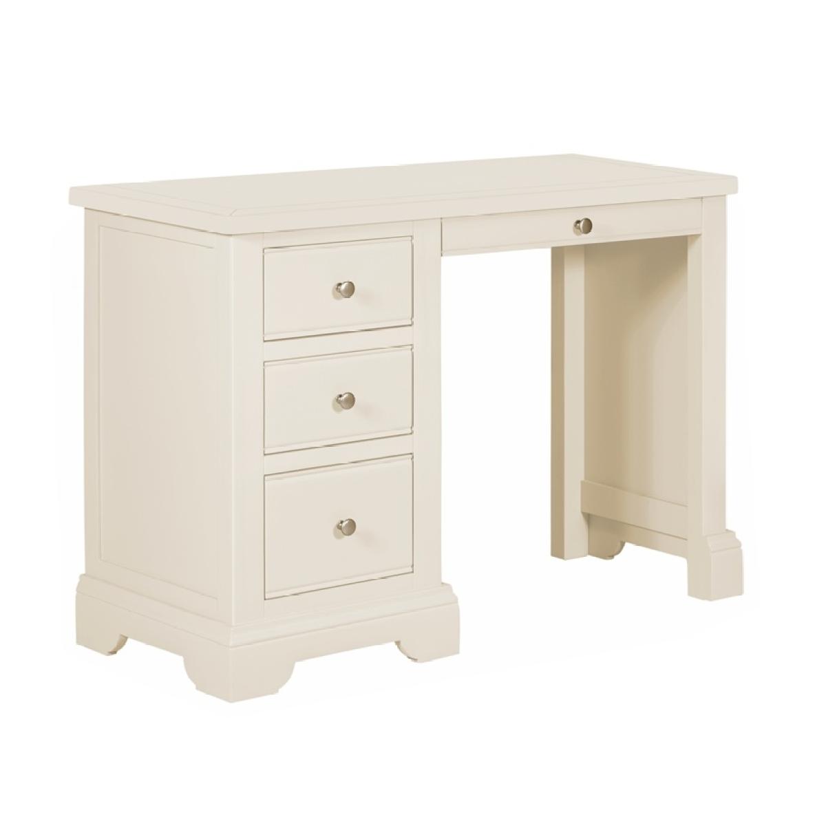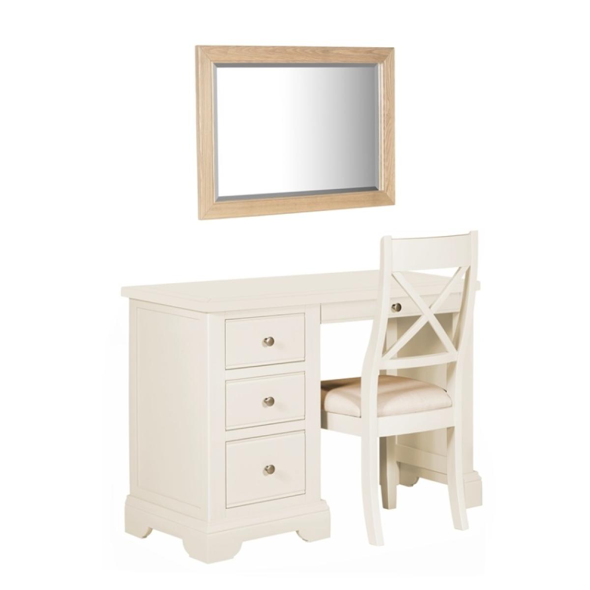 The Rouen range brings a sense of freshness and contemporary vibe to your home interior. With its white painted finish and a touch of vintage, this country-style collection is going to bring that cozy and warmth that you seek. Transform your home and make it a peaceful abode for your family. It is easy when you decorate it with the Rouen furniture range. Dressing table, the perfect place to apply makeup, catch up on work or do some self care. Contains drawers to store anything from hair/makeup products to those bits and bobs lying around. Goes perfectly with the Rouen dressing table mirror. Features: Colour - White Part Assembled (some assembly required) Dimensions: Height 76.6cm Width 112.5cm Depth 43.1cm All screens vary in colour reproduction and whilst every effort has been made to display the colour as accurately as possible it is for guidance only.