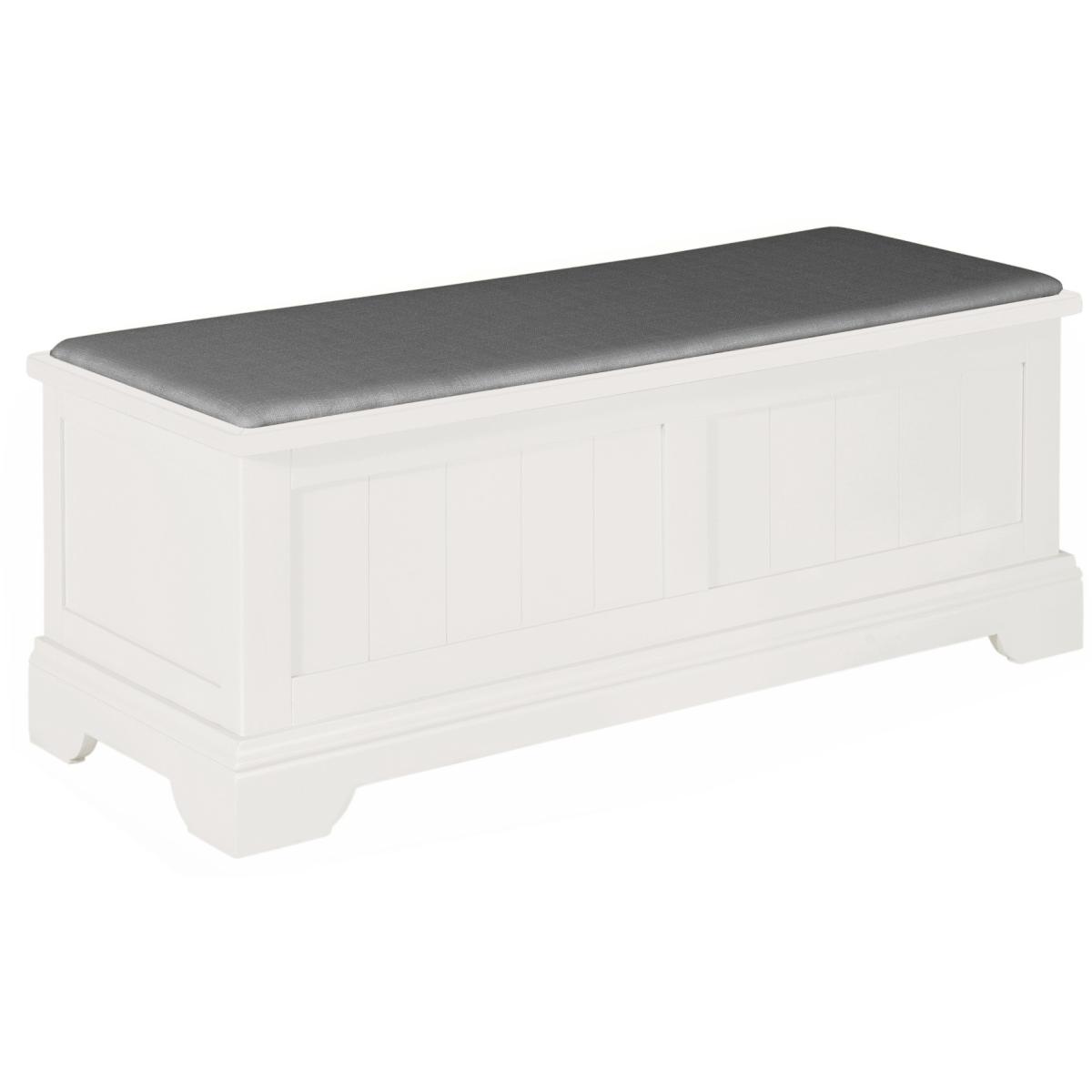 The Rouen range brings a sense of freshness and contemporary vibe to your home interior. With its white painted finish and a touch of vintage, this country-style collection is going to bring that cozy and warmth that you seek. Transform your home and make it a peaceful abode for your family. It is easy when you decorate it with the Rouen furniture range. This ottoman is perfect for storing your shoes, or maybe even the many blankets and pillows you have lying around. With its classic design, it goes perfectly with any of the Rouen range and fits nicely into any home. Features: Colour - White Grey Fabric Top Fully Assembled Dimensions: Height 46.3cm Width 120cm Depth 45cm All screens vary in colour reproduction and whilst every effort has been made to display the colour as accurately as possible it is for guidance only.
