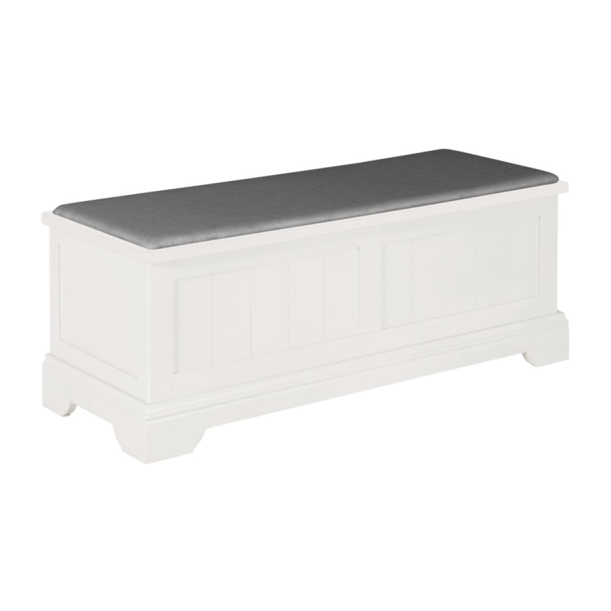 I’m a fan of the Rouen bench for its clean lines and handy hidden storage - it sits neatly at the foot of the bed without overpowering a space. The crisp white paint and simple panel detail suit coastal, Scandi-inspired or modern farmhouse interiors, and the grey cushion top adds a subtle contrast. For styling, tuck a chunky knit throw over one end and place a woven basket beside it to balance practicality with a lived-in feel. You can also layer a small tray with a candle and a ceramic vase on the seat when not in use, keeping bedside surfaces clear and clutter-free.