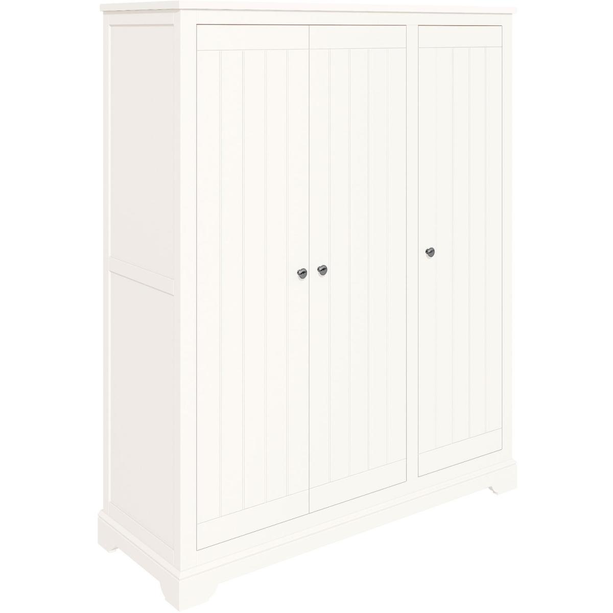 The Rouen range brings a sense of freshness and contemporary vibe to your home interior. With its white painted finish and a touch of vintage, this country-style collection is going to bring that cozy and warmth that you seek. Transform your home and make it a peaceful abode for your family. It is easy when you decorate it with the Rouen furniture range. A wardrobe with a simple and classic design in a white finish. It's elegant yet practical appearance makes it a great addition to any home. This triple wardrobe has long compartments and an extra top shelf, making it great for storing those longer items. Features: Contains an extra long compartment for those longer items. Colour - White Part Assembled ( some assembly required) Dimensions: Height 195cm Width 160cm Depth 57cm All screens vary in colour reproduction and whilst every effort has been made to display the colour as accurately as possible it is for guidance only.