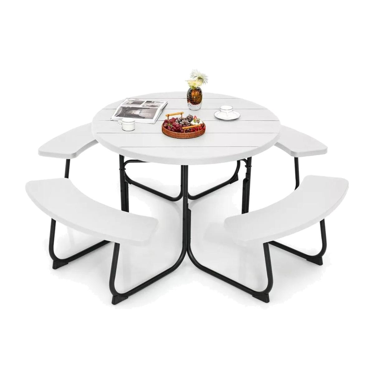 Round 8 Seater Picnic Table Set with 4 benches - White