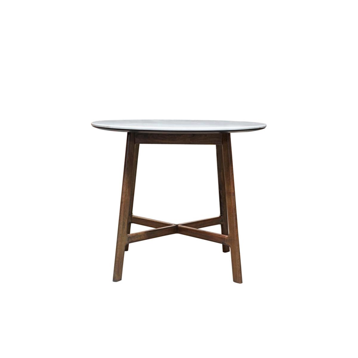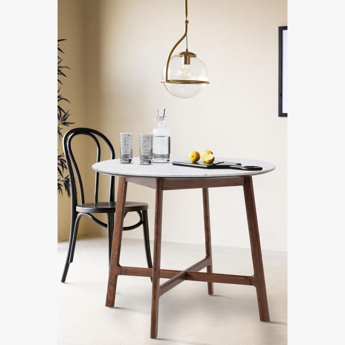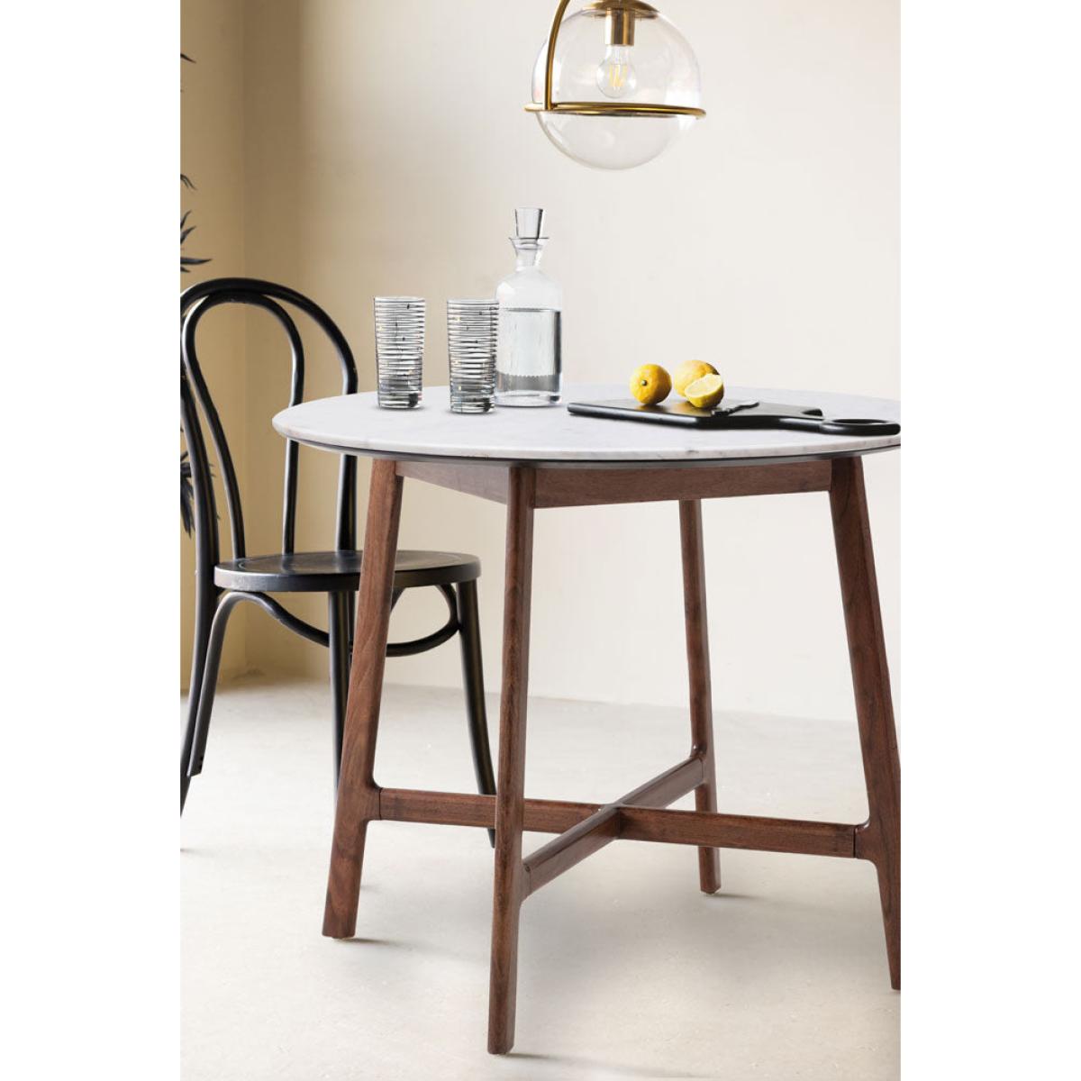 <!--td --> Step firmly into your hosting era with the gorgeous Round Acacia & Marble Dining Table. Made from dark Acacia wood for timeless Mid-century vibes, the white marble top on this wooden dining table makes everyday dining feel like a special occasion. Great for smaller spaces, this small dining table will comfortably fit four people and is perfect for intimate soirees with your favourite people. A round dining table is a favourite at Rockett St George (you'll find one in both co-founder Jane and Lucy's homes) as they create a social atmosphere and bring everyone into the conversation. So, invest in those magical moments around the dinner table and introduce this fabulous marble dining table to your home - it's a true forever piece.- Acacia wood marble top dining table - Measures: W90cm x D90cm x H76cm - Seats 4 people - Please note that self-assembly is required