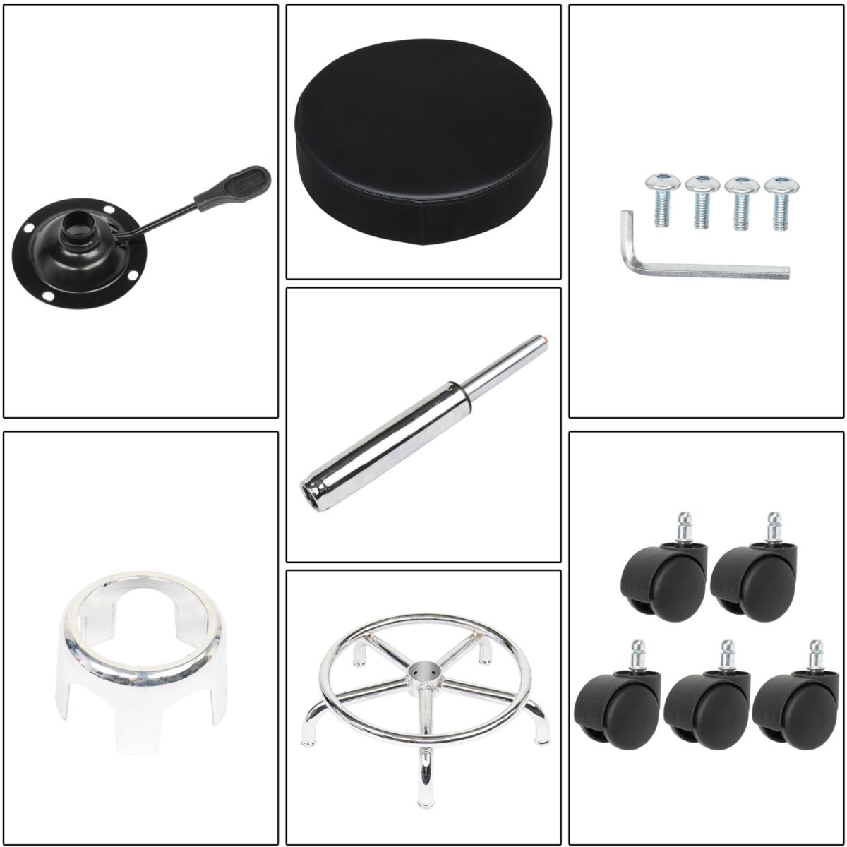 This classic stool features a round cushion sat atop a robust metal base, the seat is on a swivel offering 360 degrees of rotation. The height can be easily adjusted by pulling the handle up and down and supports up to 135K G. The sturdy steel rind offers better foot support and a more comfortable seating position while the PU leather cushion is water and oil resistant. A stylish design that is perfect for bar bistro, coffee shop, guitar, living room, patio, kitchen, workshop etc.